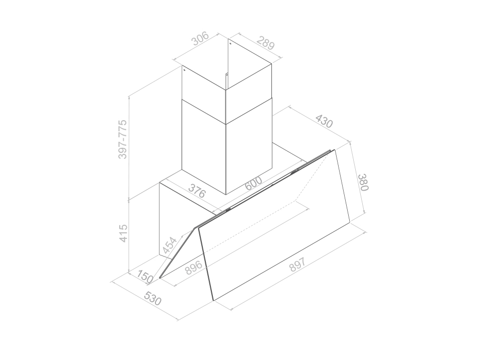 - Înălțimea de instalare recomandată de la zona de gătit până la baza hotei: 50 cm. Pentru plitele pe gaz, înălțimea minimă: 65 cm.