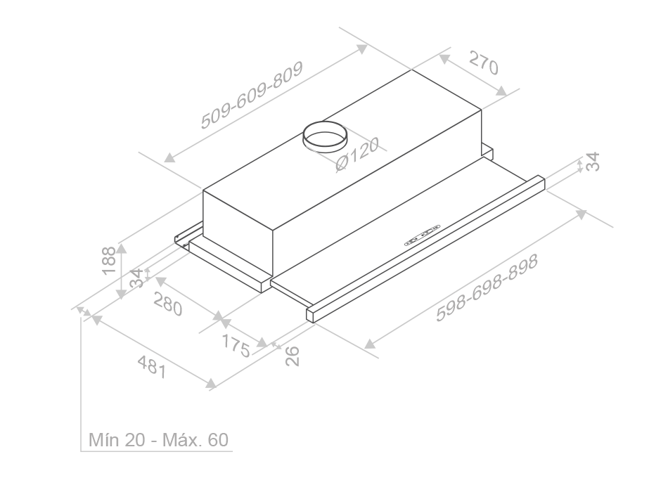 Hota incorporabila Pando ES, extensibila integrata cu fata din otel inoxidabil - gri