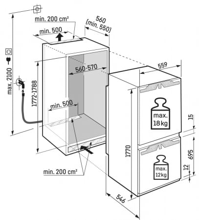 Combina frigorifica incorporabila Liebherr ICBNbsci 5173 Peak, NoFrost cu BioFresh Professional si HydroBreeze, 56 cm, 246 l, SmartDeviceBox, IceMaker, Interior BlackSteel, Clasa C