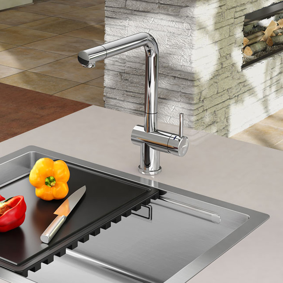 Accesoriile pentru instalare, cum sunt sistemul de fixare pe chiuveta sau pe blat si furtunurile de alimentare, sunt incluse.