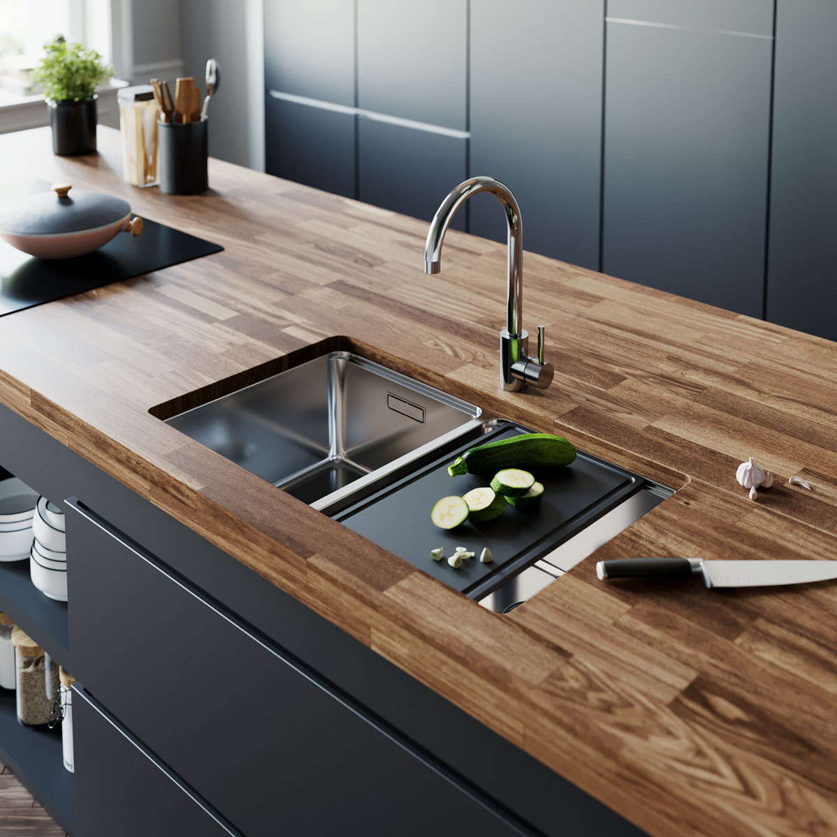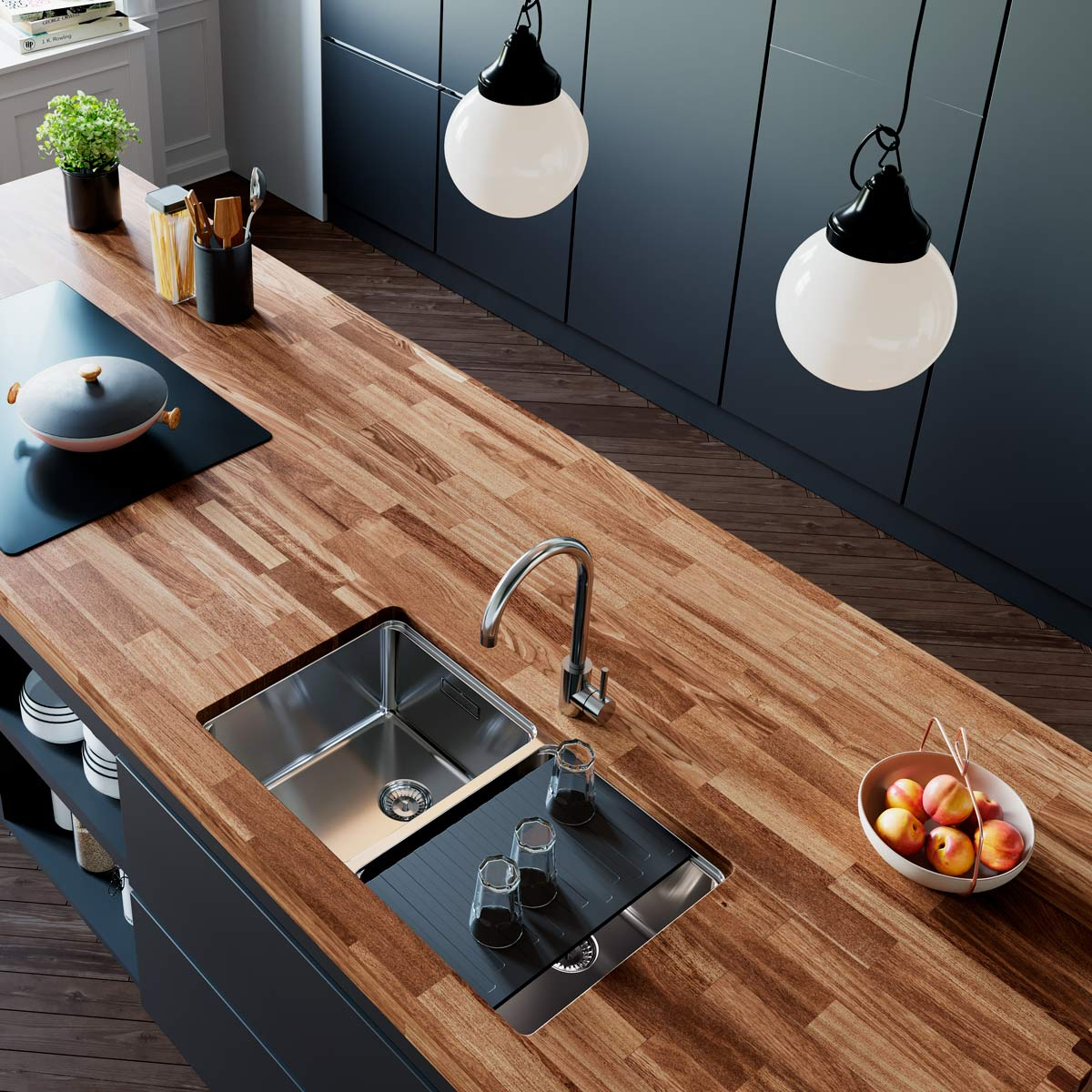 Corpul de mobilier pentru chiuveta de bucatarie recomandat de producator este de 800mm lungime.