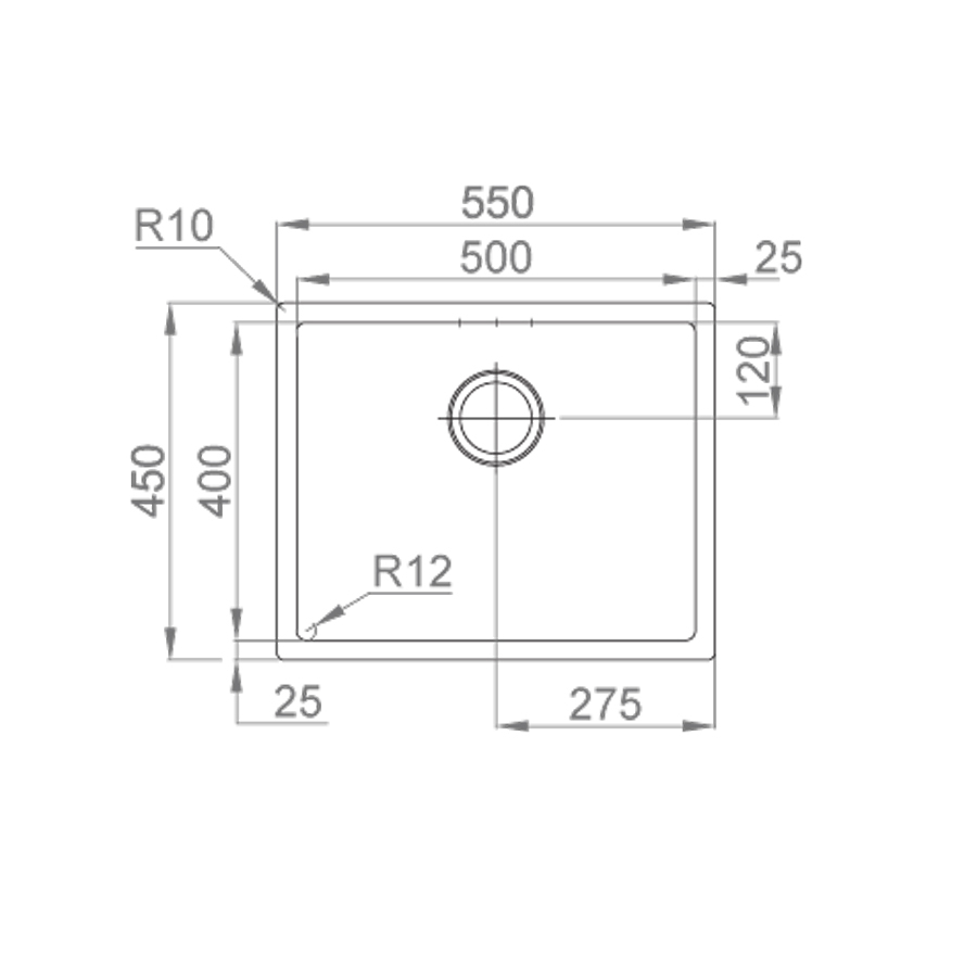 Dimensiunea exterioara a chiuvetei este de 550mm lungime / 450mm latime / 200mm inaltime,