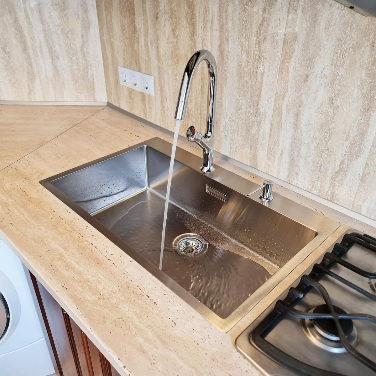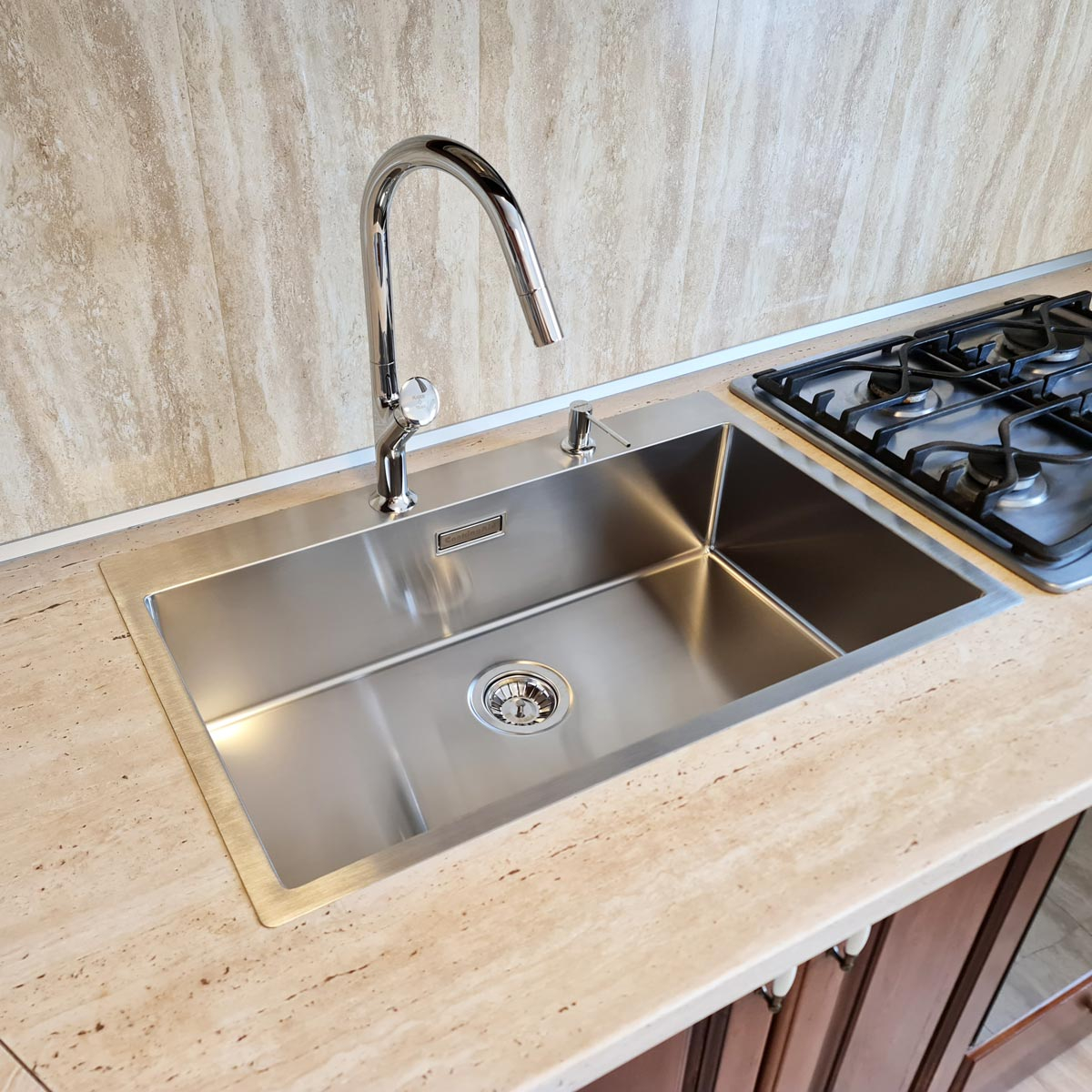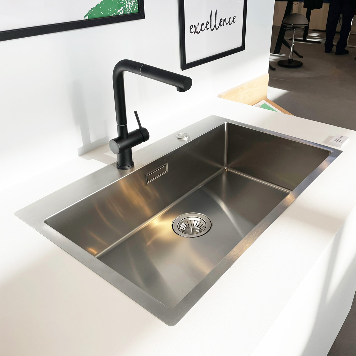 Chiuveta Box Lux 76 cu un aer minimalist, este sudata din otel inoxidabil periat 18/10 si se poate monta fie pe blat fie la nivelul blatului, avand o buza superioara simpla si subtire de doar 1.2mm grosime, fara tesituri sau alte indoiri, asadar se imbina perfect cu blatul fara acea margine ridicata specifica la chiuvetele standard.