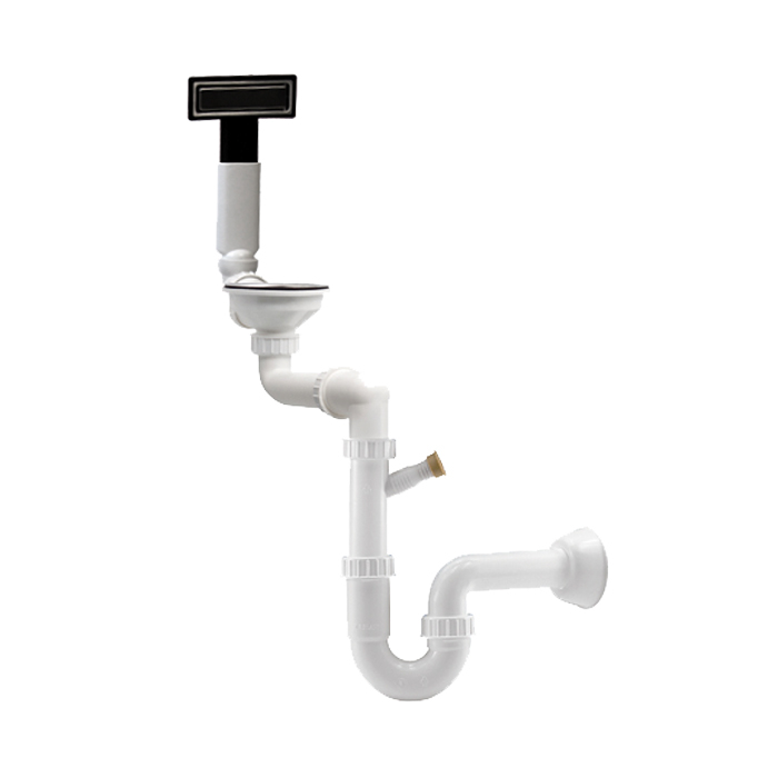 -setul complet de tevi din plastic cu sifon si preaplin dreptunghiular invizibil, ascuns in spatele siglei CookingAid;