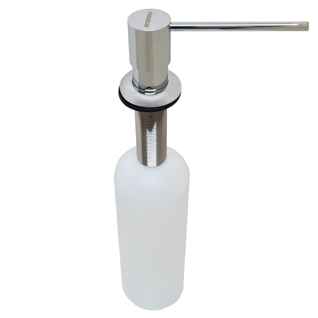 -dozator detergent CookingAid Rodi finisaj cromat cu recipient 500ml si umplere usoara. In functie de finisajul bateriei pe care il alegeti, dozatorul inclus poate sa fie inlocuit cu unul din inox periat, fara diferenta de cost.