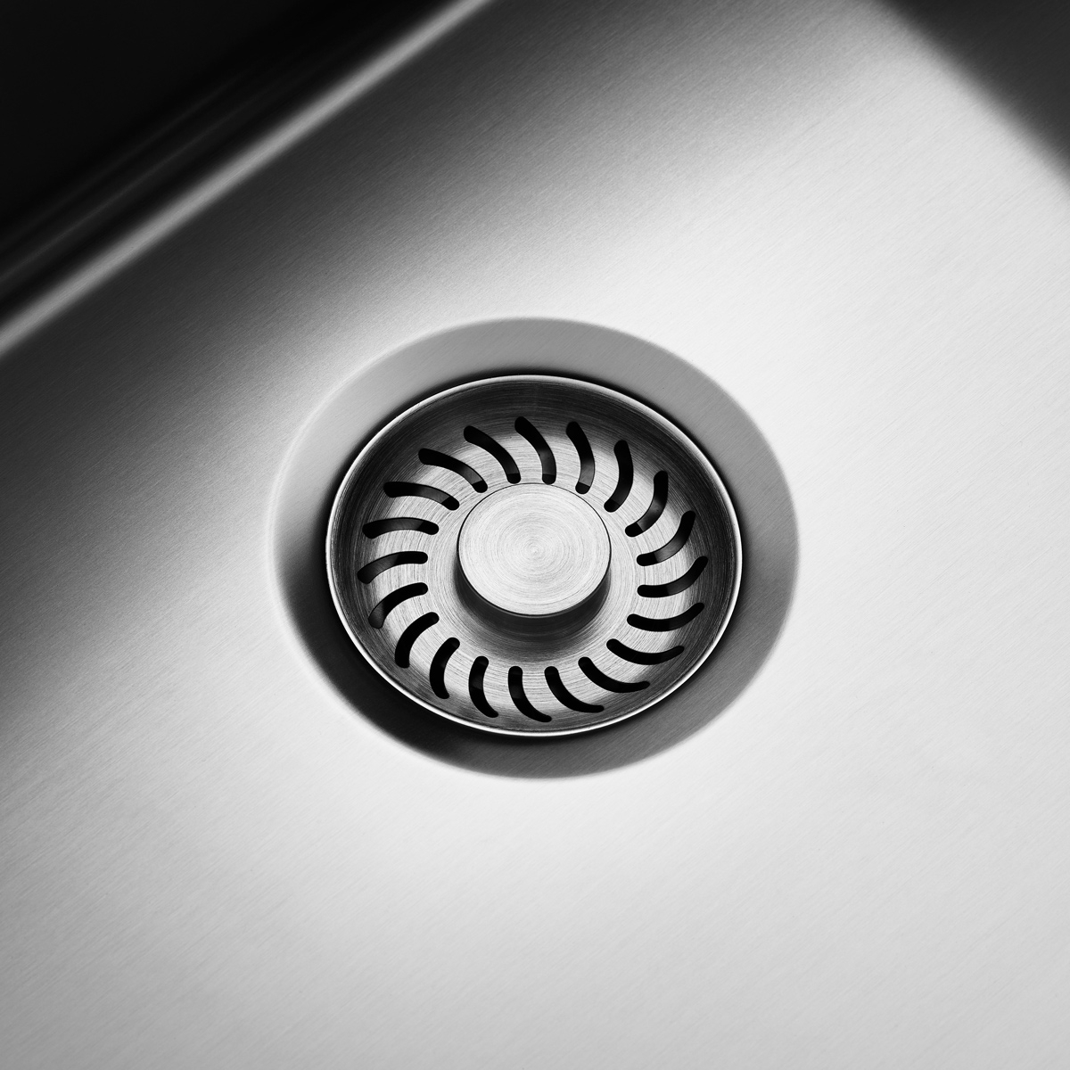 Este o chiuveta cu o singura cuva si ventil de scurgere rotund, cu inchidere si deschidere prin apasarea/ridicarea gratarului de colectare a resturilor alimentare, ideala pentru bucatarii mari sau medii, unde se doreste eficientizarea spatiului pe blat.