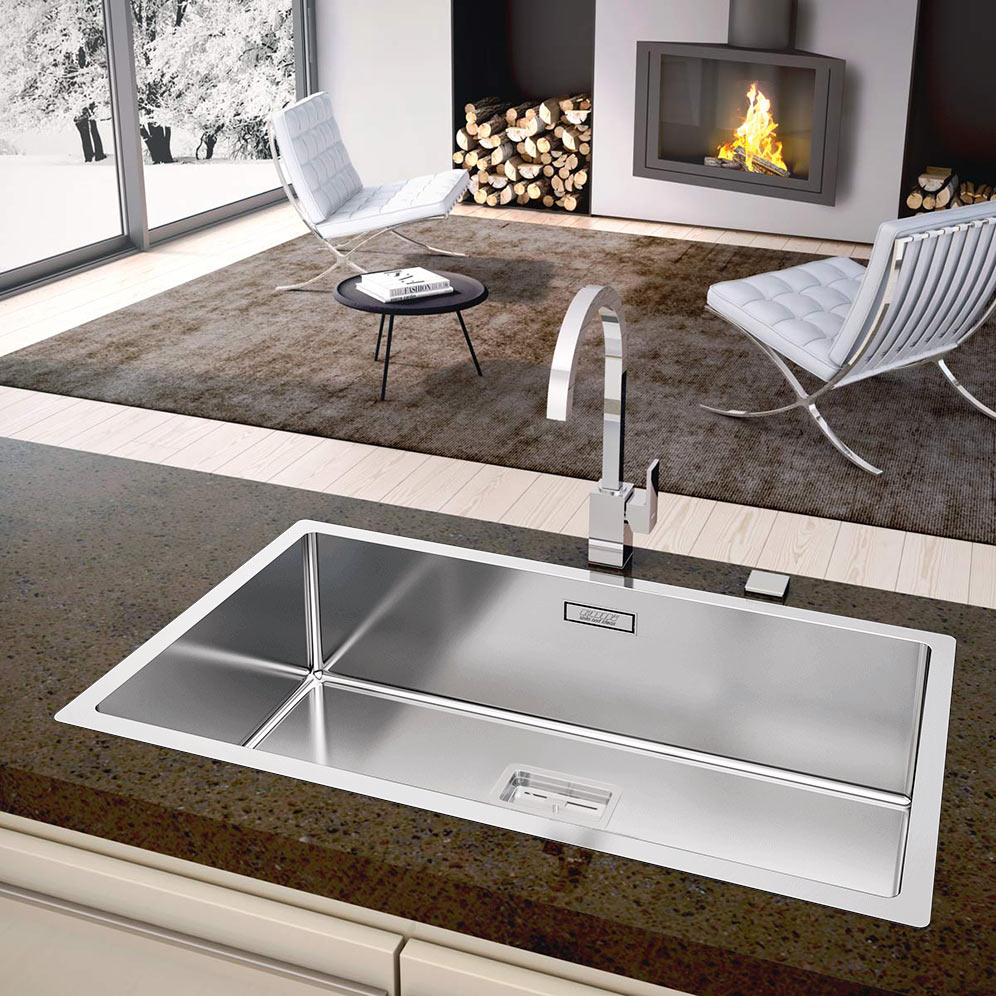 Chiuveta Box Lux 74 cu un aer minimalist, este sudata din otel inoxidabil periat 18/10 si se poate monta aproape invizibil fie pe blat fie la nivelul blatului fie sub blat, avand o buza superioara simpla de 1.2mm grosime, fara tesituri sau alte indoiri.