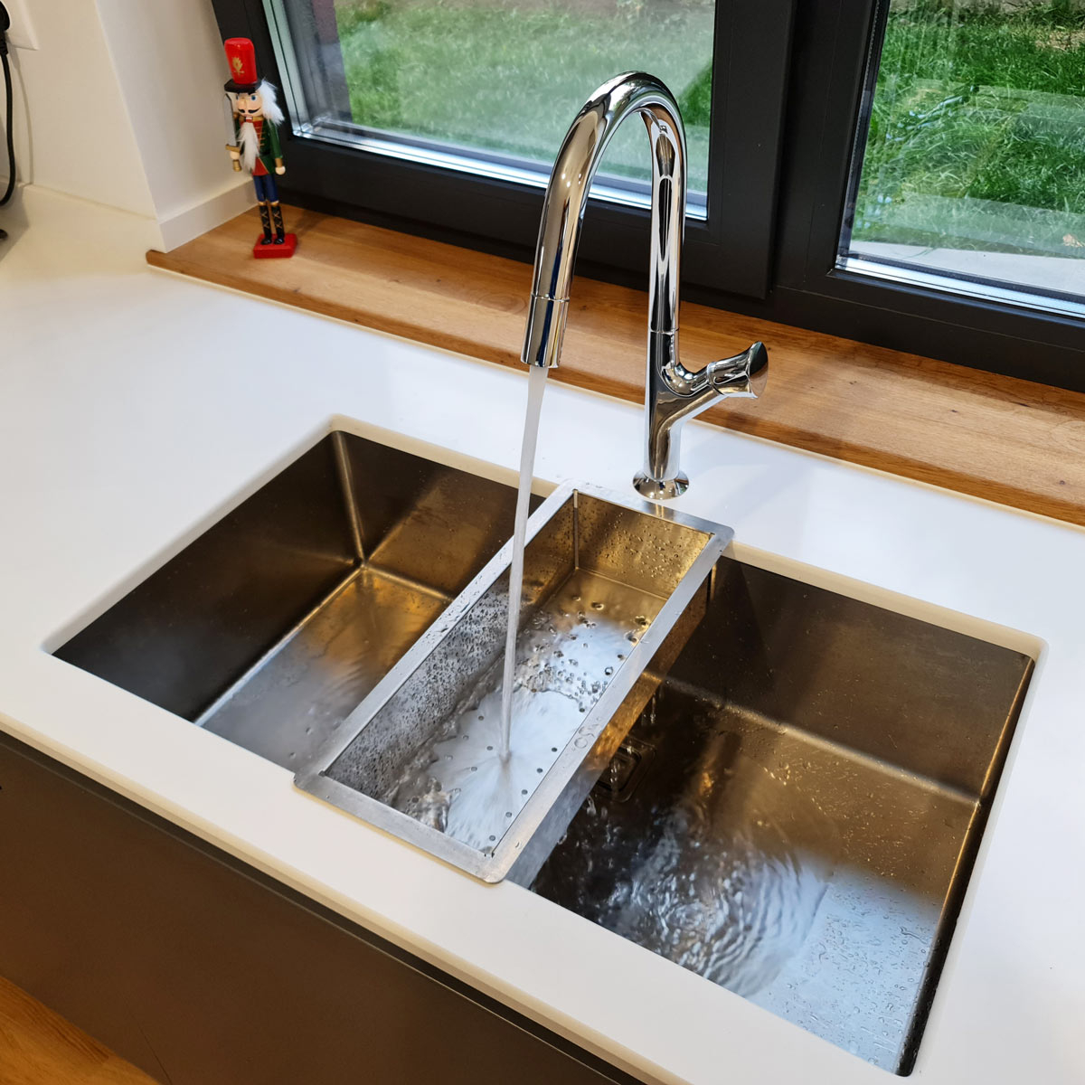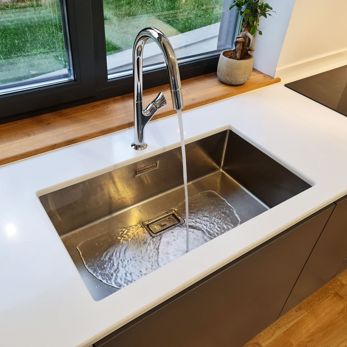 Corpul de mobilier pentru chiuveta de bucatarie recomandat de producator este de 900mm lungime.