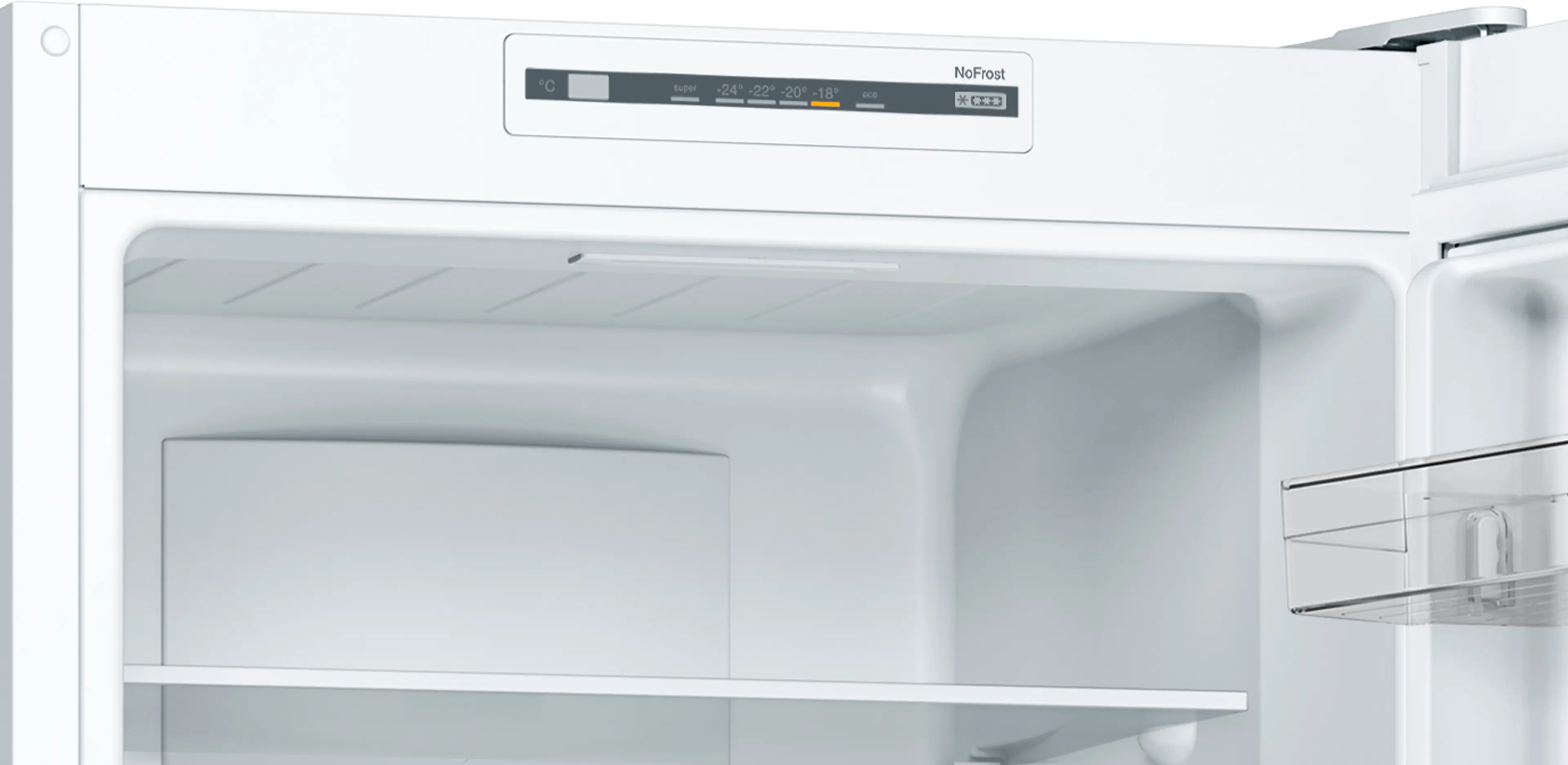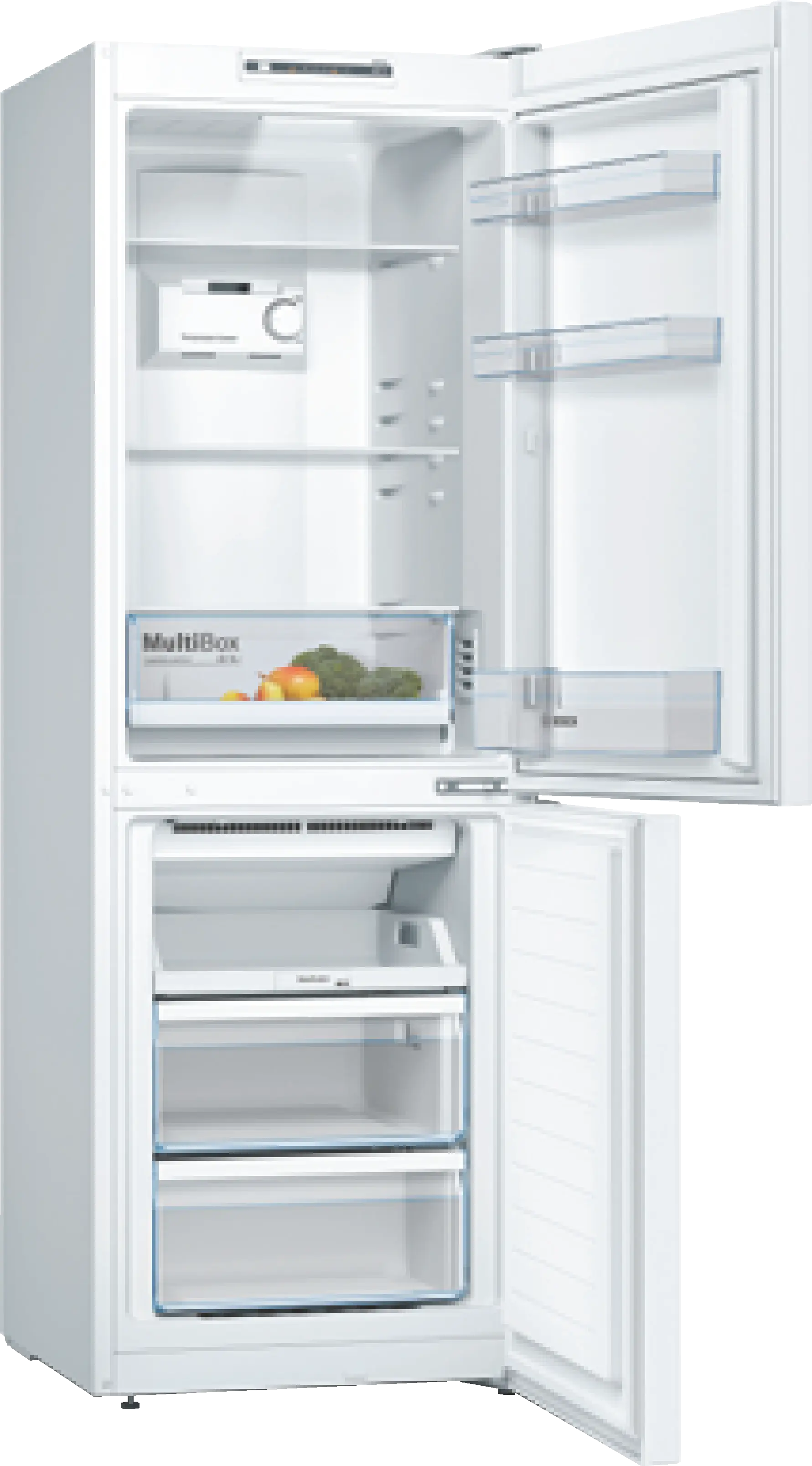 Combina frigorifică Bosch Seria 2 KGN33NWEB este o soluție practică și eficientă pentru orice bucătărie, oferind tehnologie Total No Frost pentru eliminarea gheții și o capacitate totală generoasă. Cu sistem Multi Airflow pentru distribuția uniformă a aerului, iluminare LED și funcție Super Congelare, asigură păstrarea optimă a alimentelor în condiții ideale.