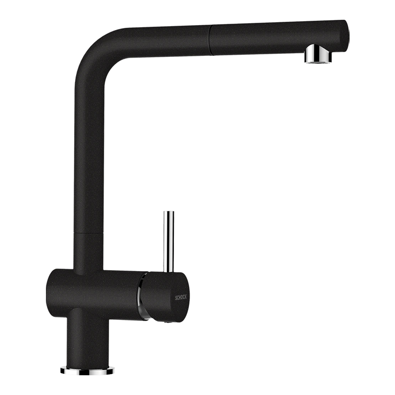 Schock Baterie bucatarie Schock Epos Cristalite Nero cu cap extractibil, aspect granit, cartus ceramic, negru