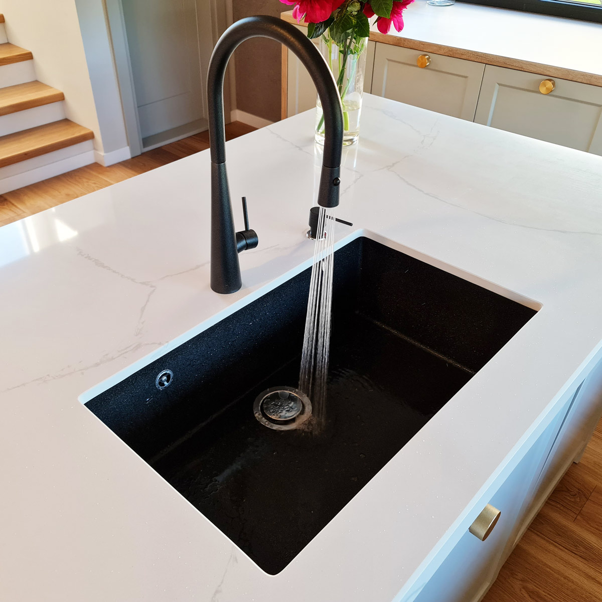 Accesoriile pentru instalare, cum sunt furtunurile de alimentare si sistemul de prindere pe chiuveta sau pe blat care este este foarte ingenios si usor de folosit, sunt incluse.