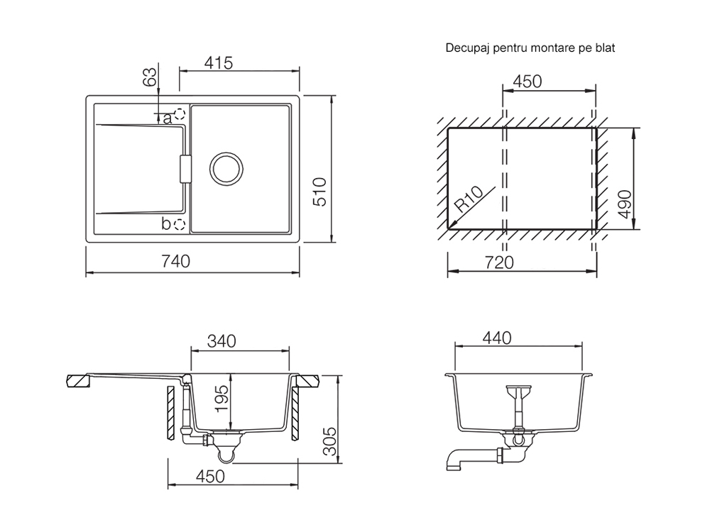 | Inclus in pachet de livrare | Garnitura de scurgere, ventil cos, sifon si cleme, carota diamantata |