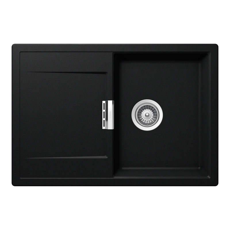 Chiuveta bucatarie Schock Mono D-100S Cristadur Puro 740 x 510 mm, granit, reversibila, montare pe blat, negru intens cu montare pe blat si 1 cuva cu picurator este destinata adaptarii corpurilor de chiuveta de minim 45 cm. Chiuveta este reversibila, gaura pentru baterie este prefrezata si se face cu ajutorul carotei inclusa in coletul de livrare. Ceea ce surclaseaza acest model este chiar materialul de productie - CRISTADUR®, care se remarca prin suprafata densa, neporoasa, adica extrem de igienica, care nu permite murdariei sau bacteriilor sa adere si sa se fixeze pe suprafata chiuvetei - pentru intretinere facila si un plus de siguranta. Designul de dimensiuni reduse in lungime inseamna ca acest model se integreaza perfect intr-o bucatarie de apartament sau de garsoniera. Plus pentru design - amprenta puternica a elegantei pe care o emana aspectul clasic, imbogatit cu accente estetice moderne. Iar pentru a preintampina nevoile cele mai riguroase ale clientilor, tehnologia de productie CRISTADUR® ofera culori chiar mai stralucitoare, dar cel mai important, materiale mult mai rezistente decat oricare altele disponibile pe piata, datorita tehnologiei de ranforsare cu fibra din sticla la baza cuvei, pentru a spori rezistenta la impact a materialului de pana la 4 ori. Pachetul include garnitura de scurgere, ventil cos, sifon, cleme si Carota Diamantata.