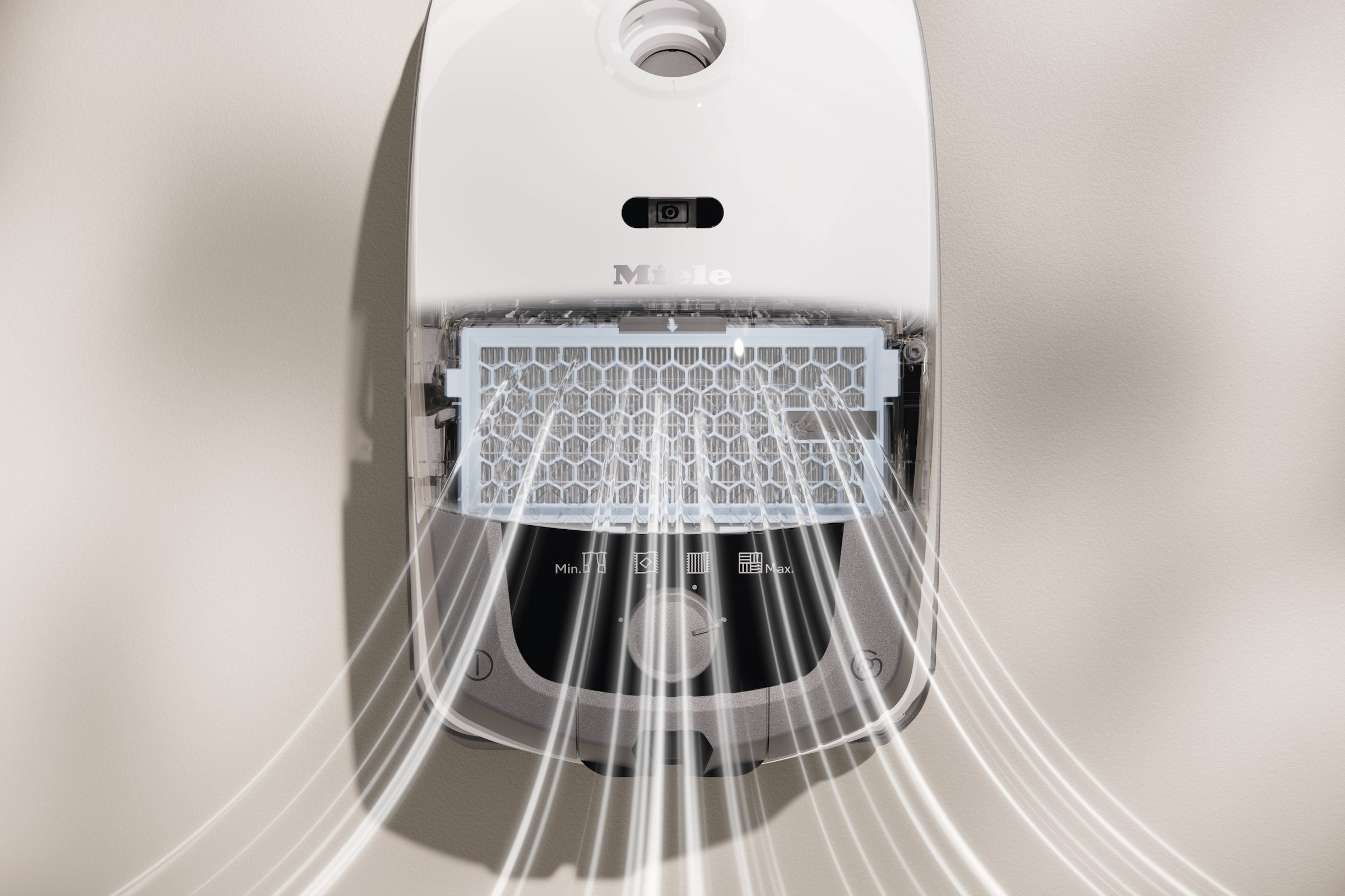 Filtrul AirClean Plus reține praful și asigură o filtrare eficientă pentru un aer curat în cameră.