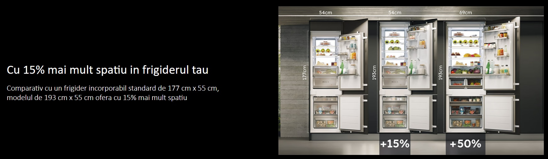 Disponibila in trei dimensiuni diferite (177 cm x 54 cm, 193 cm x 54 cm si 193 cm x 69 cm), gama de frigidere incorporabile ID Titanium 2 aduce cele mai bune solutii de conservare a alimentelor in bucataria ta. De la tehnologia avansata de racire si solutiile flexibile de depozitare, pana la designul modern si numeroasele functii de conectivitate, se adapteaza perfect nevoilor si preferintelor tale personale.
