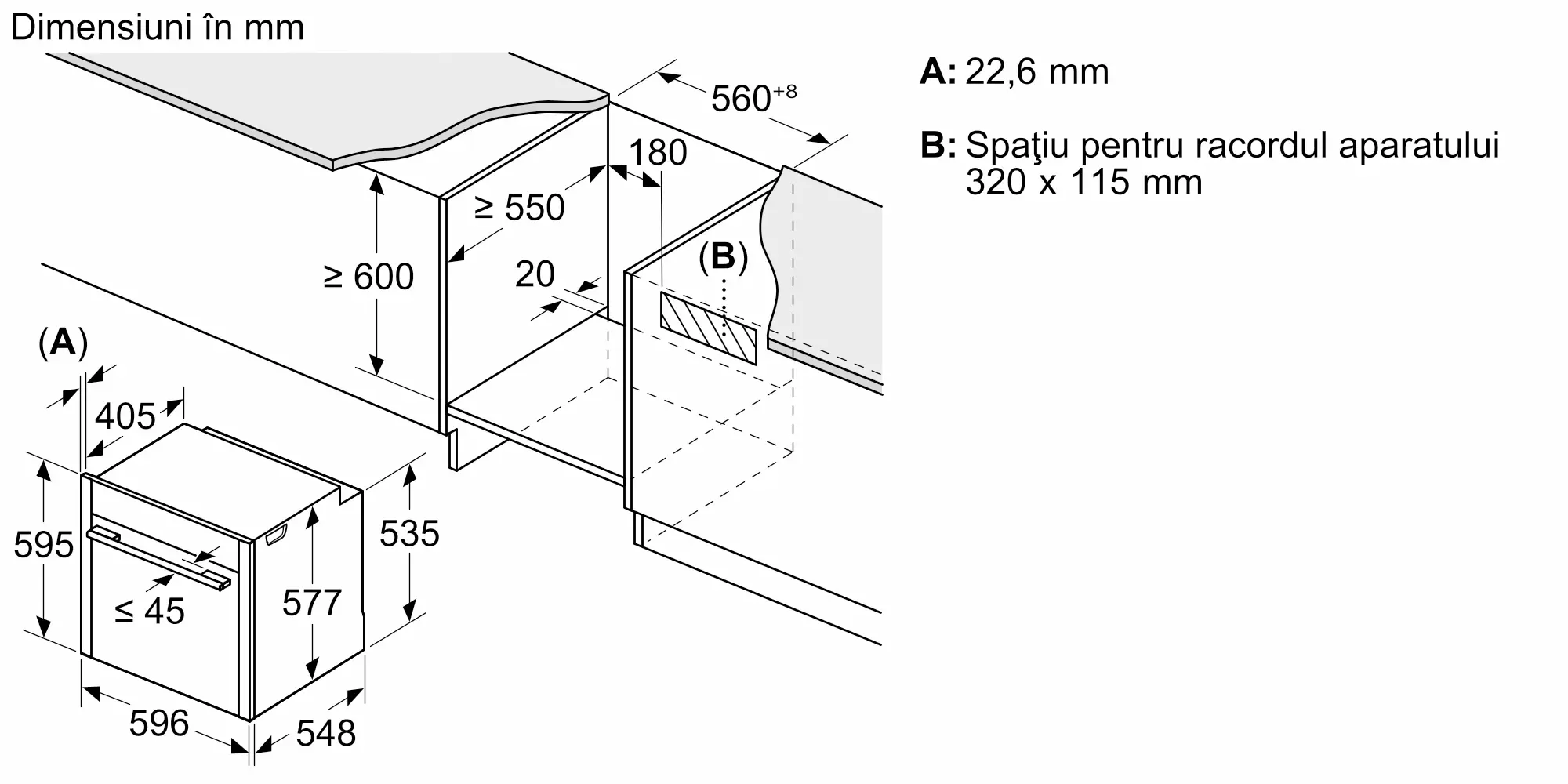 Unde poate fi instalat aparatul – Dulap inferior, instalare la inaltime