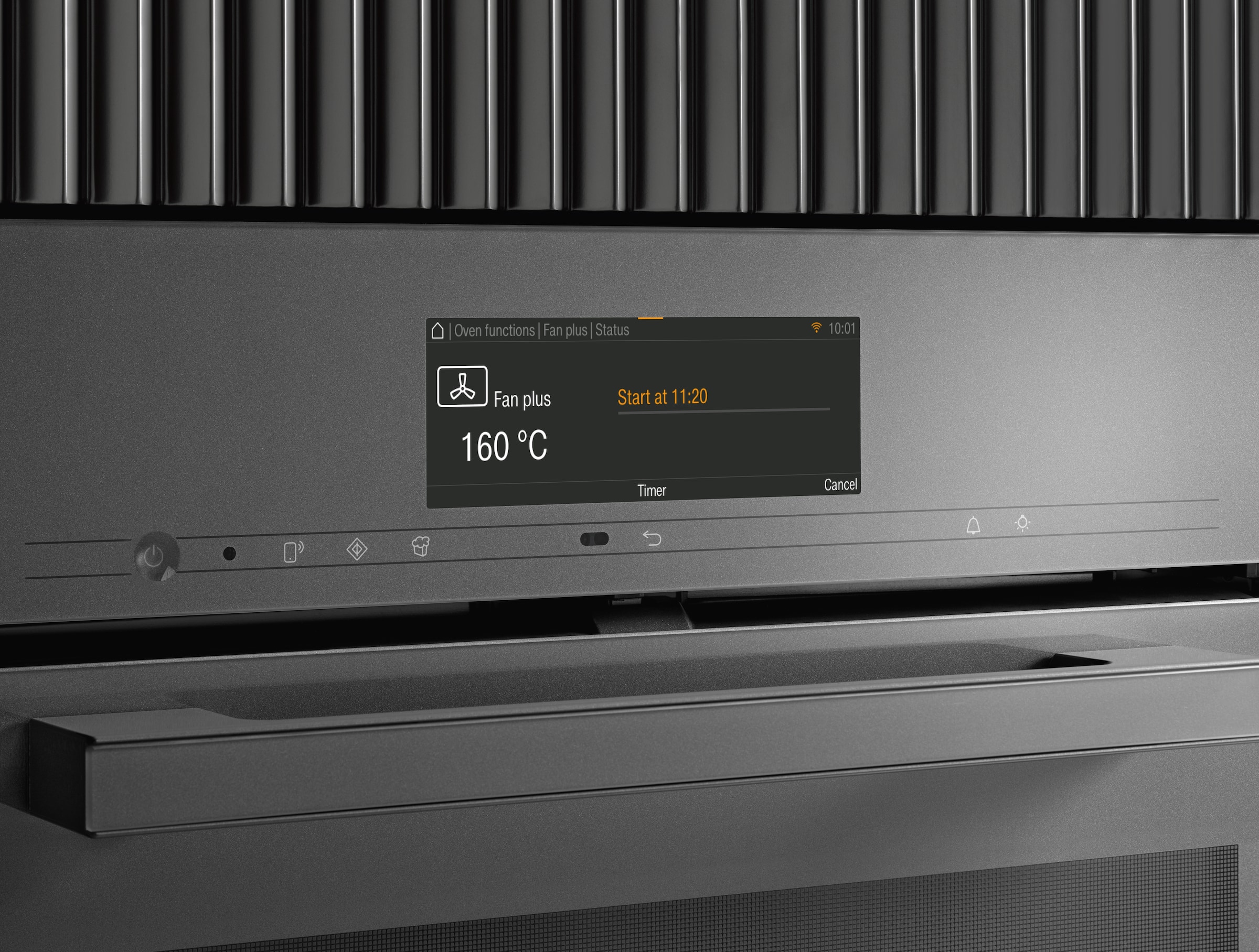 Este suficient să selectați ora de începere, ora de terminare sau durata procesului de preparare și totul va fi pregătit exact atunci când vă doriți. Procesul de preparare se încheie automat atunci când durata de preparare programată ajunge la final. Cronometrul integrat este și el o opțiune convenabilă pentru multe situații. Mai mult, în cazul unei pene de curent, timpul setat este salvat pentru aproximativ 150 de ore.