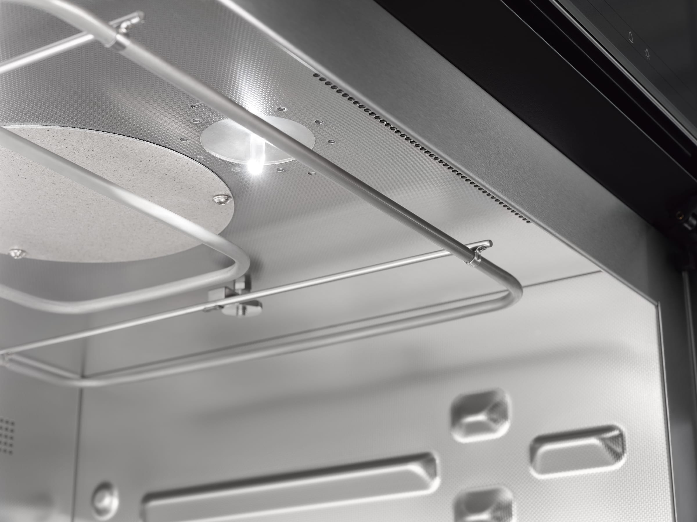 Spot-ul LED iluminează perfect incinta cuptorului într-o manieră durabilă mulțumită caracteristicilor sale care nu necesită întreținere. În plus este și deosebit de eficient din punct de vedere energetic.
