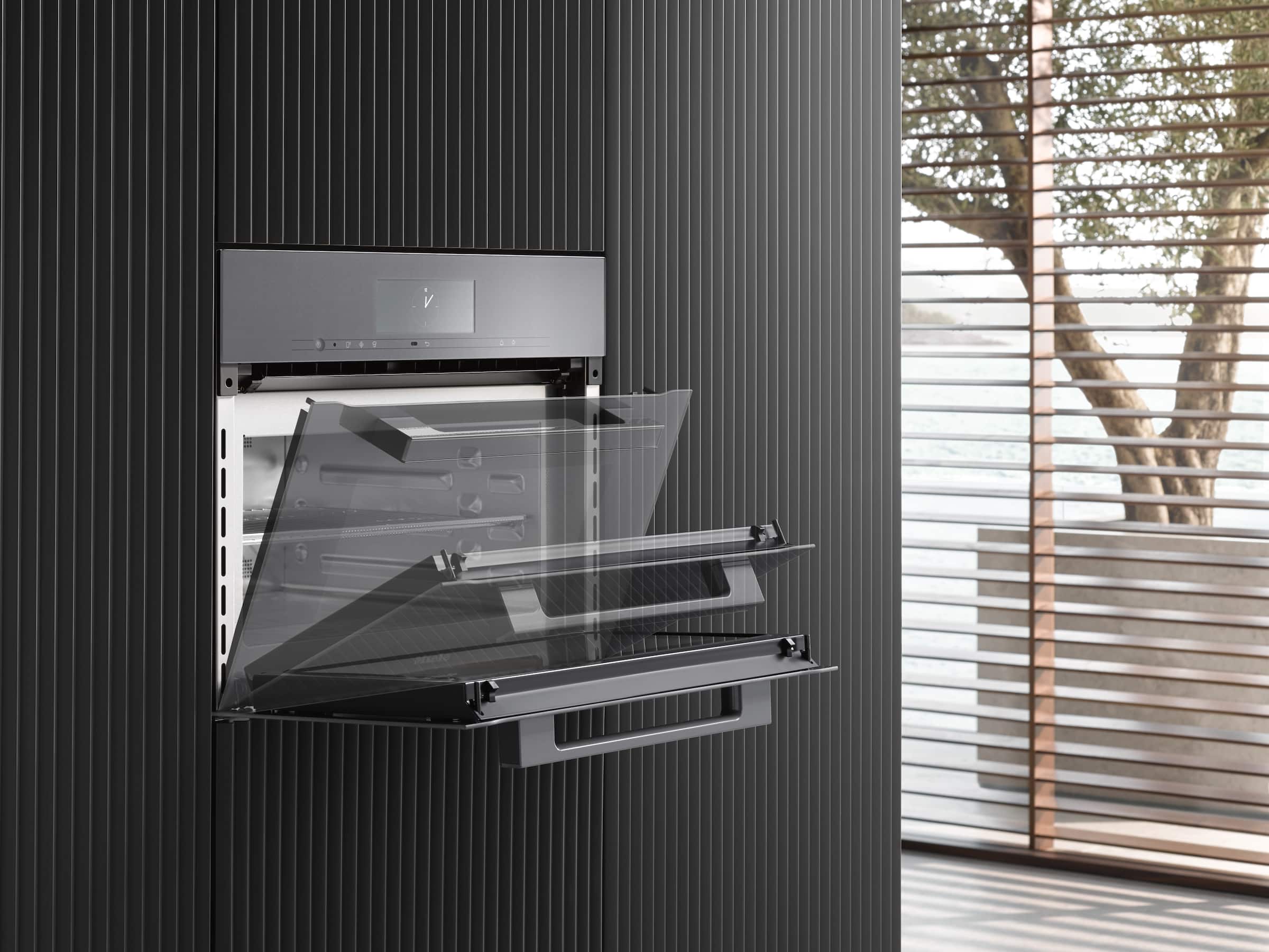 Cuptoarele combi cu microunde de la Miele sunt răcite pe toate laturile. Acest lucru asigură faptul că mânerele, comenzile și incintele învecinate rămân relativ reci la atingere. Panourile cu straturi multiple izolează eficient ușa cuptorului și asigură o temperatură scăzută pe partea exterioară a ușii, oferind protecție împotriva arsurilor.