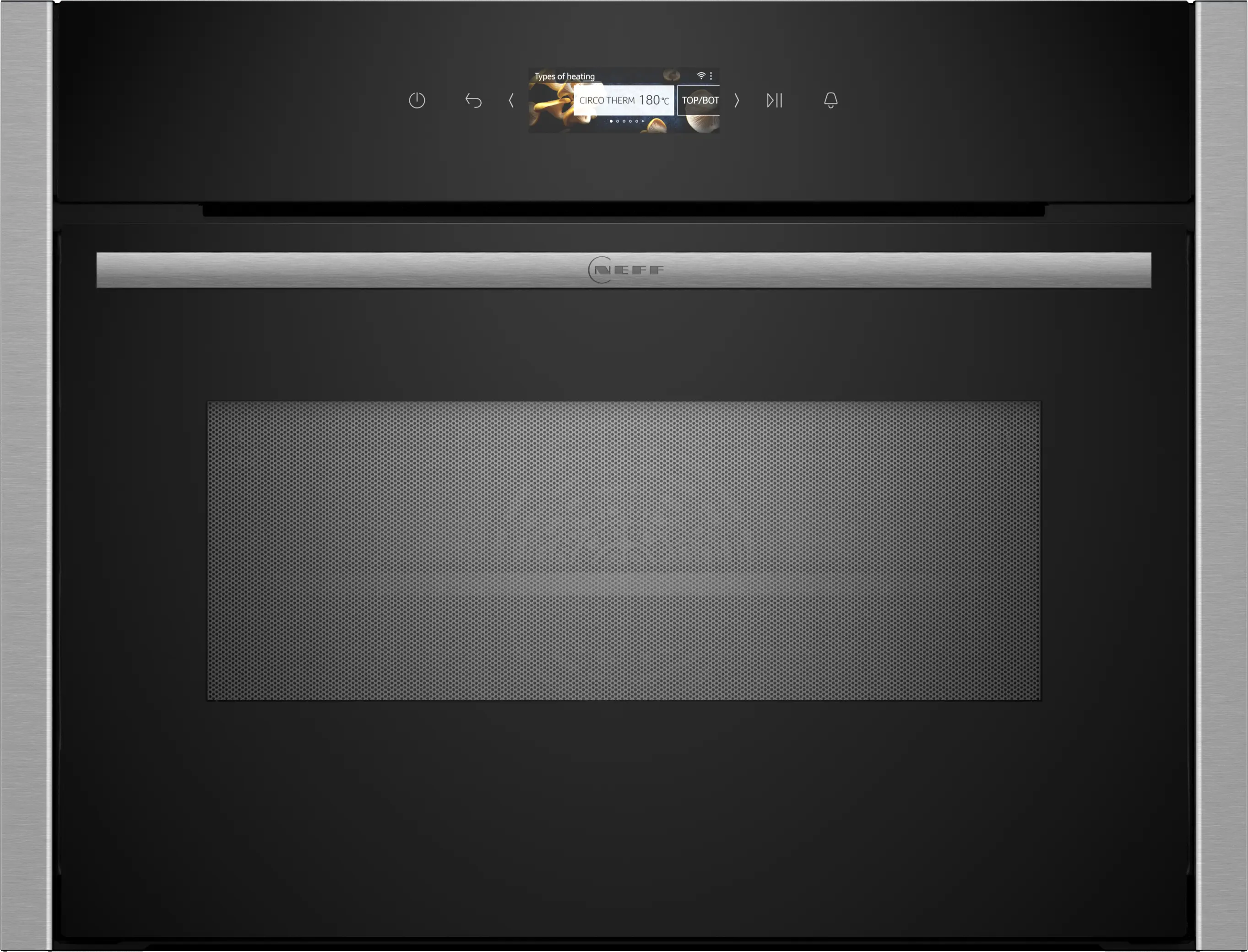 Cuptor compact incorporabil cu microunde NEFF C24MR21N0 N70, 45 L, 900 W, TFT Touch Display, Home Connect, inox