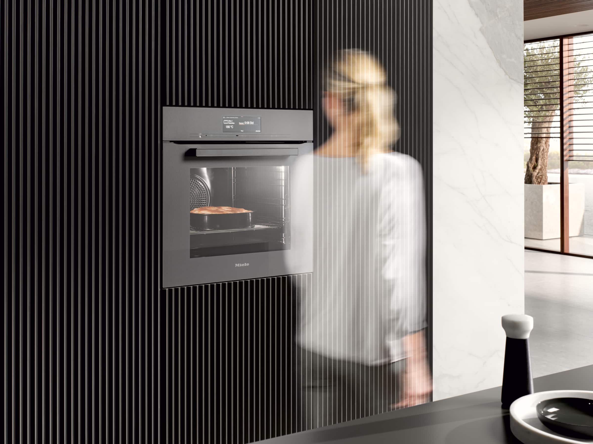 O cameră video integrată în plafonul cuptorului vă permite să utilizați o varietate de soluții inteligente și inovatoare. De exemplu, puteți oricând să fiți cu ochii pe procesul de gătire, indiferent unde vă aflați. Aflați mai multe pe Miele@home.6