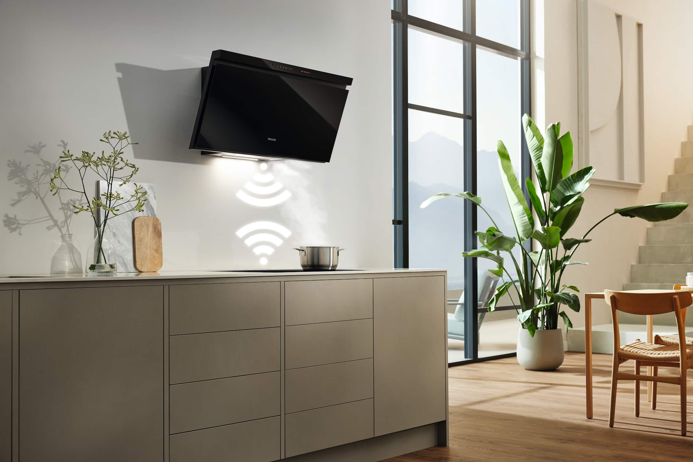 Funcţia automată Miele, Con@ctivity 2.0*, permite hotei să comunice cu plita: Setările plitei sunt transmise comenzilor hotei. Hota dvs. Miele utilizează apoi aceste date pentru a selecta automat setarea corectă pentru ventilator, în vederea asigurării permanente a unui climat optim în încăpere.