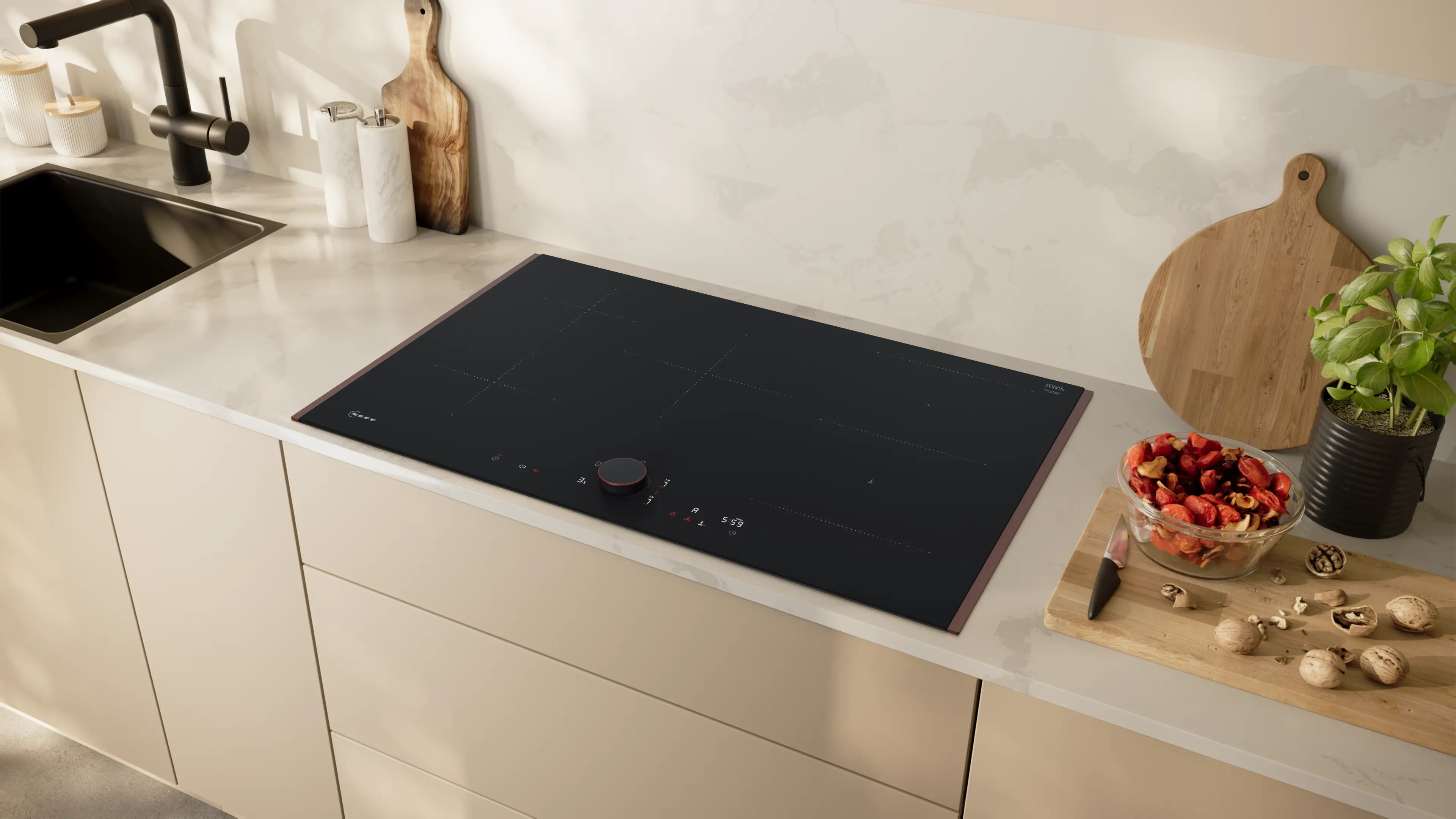 Neff Plită cu inducție NEFF N90 T58YYW4B0, 80 cm, FlexInduction (Combi Zone), Twist Pad Flex®, Home Connect, Frying Sensor, Flex Design, Negru mat