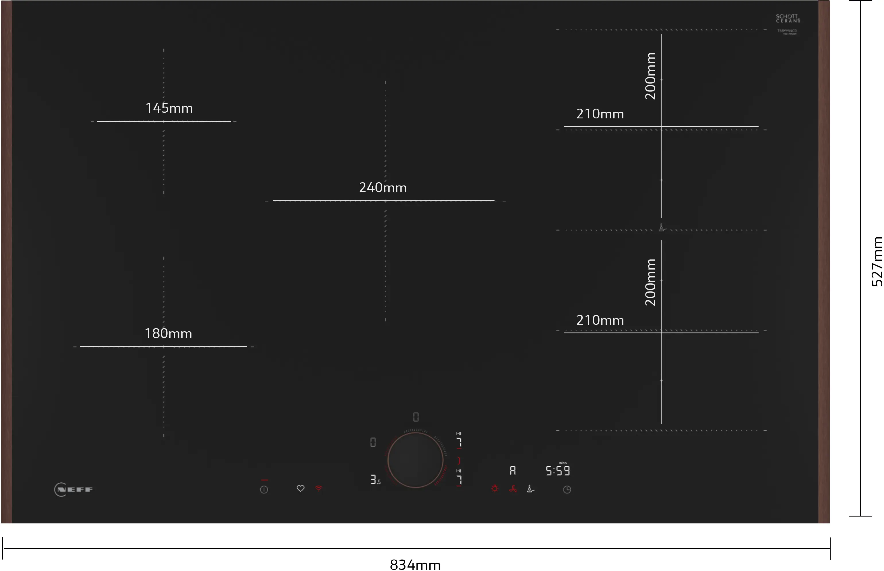 Plită cu inducție NEFF N90 T68YYV4C0, 80 cm, FlexInduction, Twist Pad Flex®, Home Connect, Frying Sensor, Flex Design, Negru