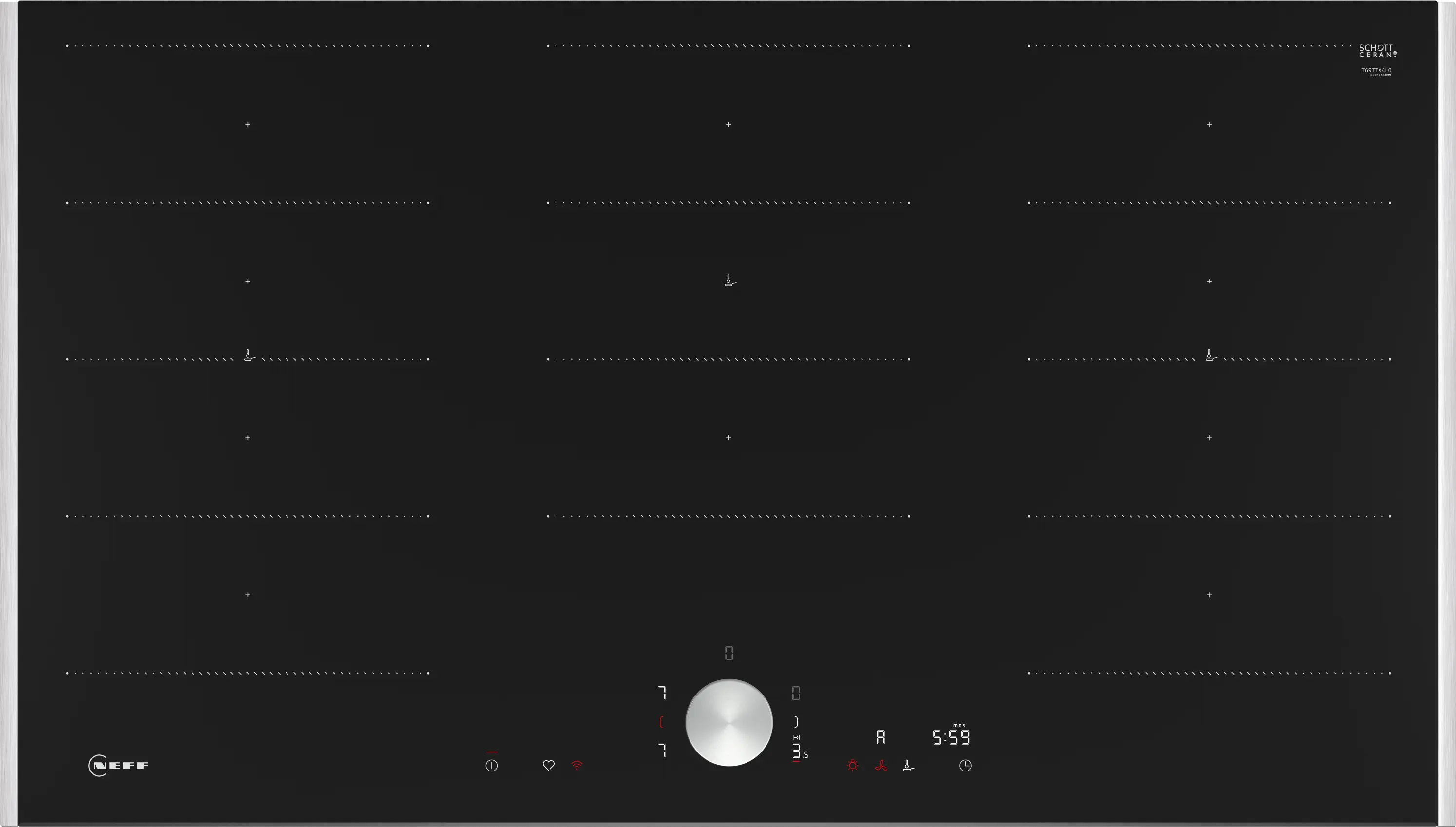Plită cu inducție NEFF N90 T69TTX4L0, 90 cm, FlexInduction, TwistPad®, Home Connect, 5 zone, Frying Sensor, sticlă ceramică neagră