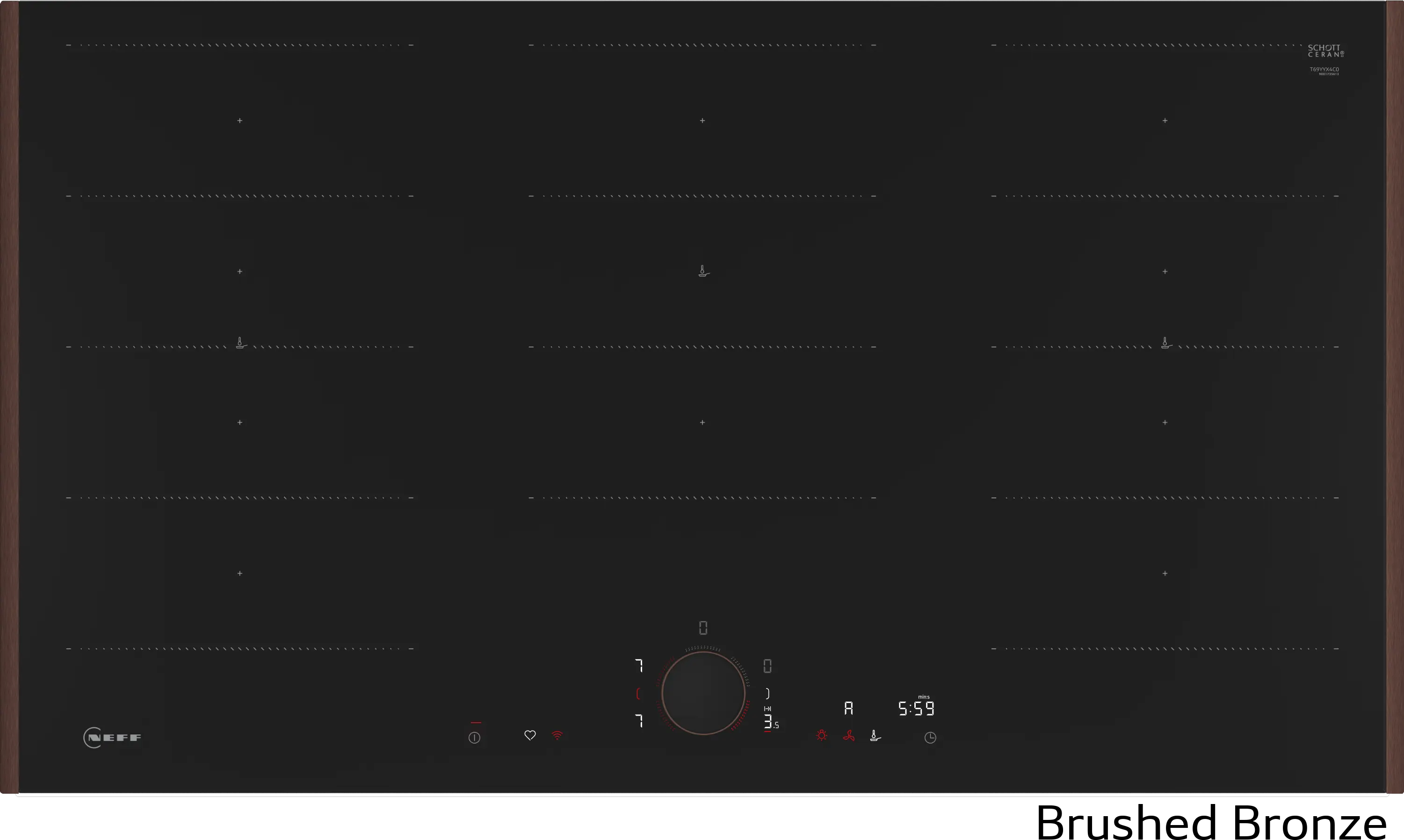 Plită cu inducție NEFF N90 T69YYX4C0, 90 cm, FlexInduction, Twist Pad Flex®, Home Connect, Frying Sensor, Flex Design, Negru mat
