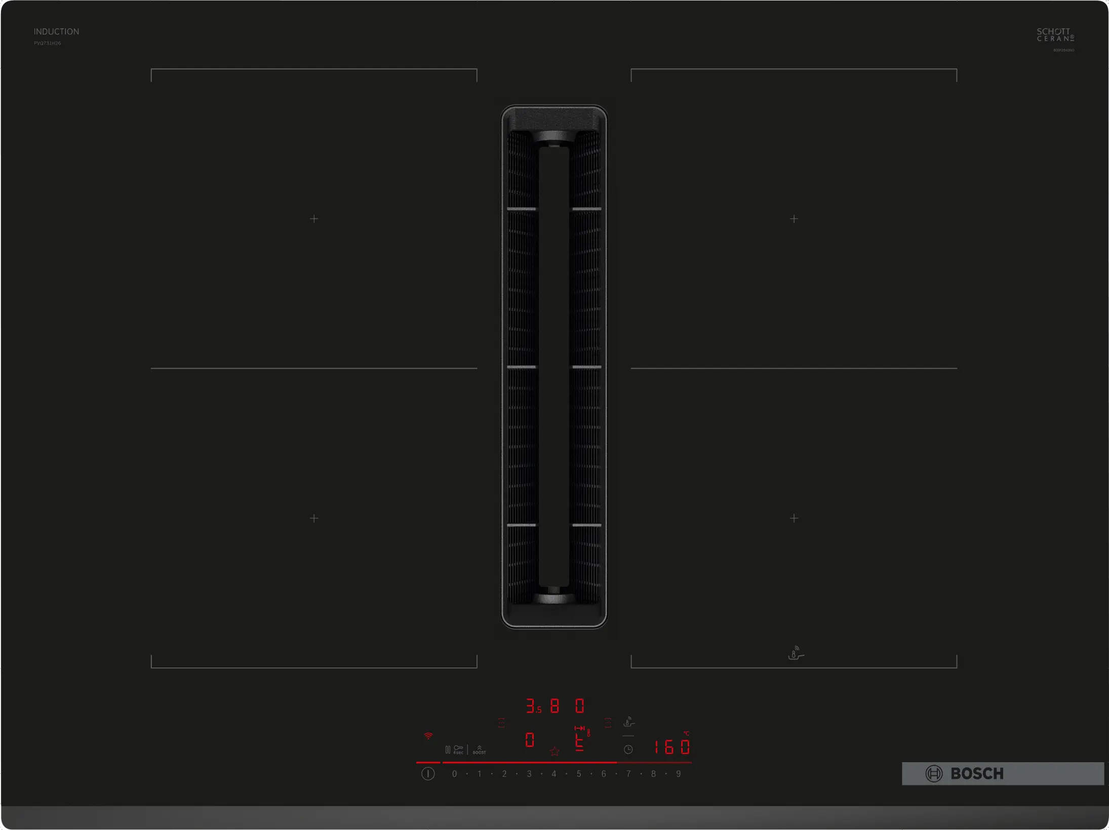 Plita cu inducție Bosch Seria 6 integrează perfect gătitul și ventilarea într-un singur aparat modern. Cu hotă incorporată, funcție CombiZone, control Multitouch+ și conectivitate Home Connect, oferă performanță premium, economie de spațiu și un design minimalist ideal pentru bucătării contemporane.