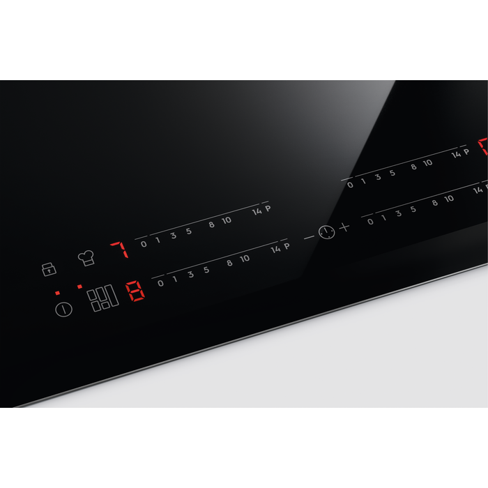 Reglează cu ușurinţă setările de temperatură ale plitei cu ajutorul comenzilor tactile directe. Fiecare zonă de gătit are un panou de control individual pentru a ști întotdeauna care sunt setările de căldură. În plus, datorită suprafeţei netede și unitare, plita este mult mai ușor de curăţat.