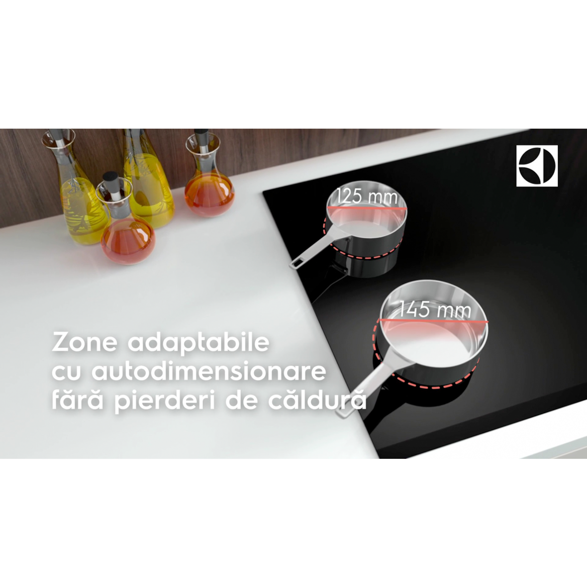 Zone cu autodimensionare pentru mai multe tipuri de vase de gatit
