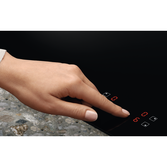 Nu trebuie să ghicești atunci când folosești comenzile tactile pentru inducţie. Modifică cu ușurinţă setările plitei folosind panoul tactil din sticlă. În plus, este și ușor de curăţat, deoarece nu are butoane sau selectoare ieșite în relief.