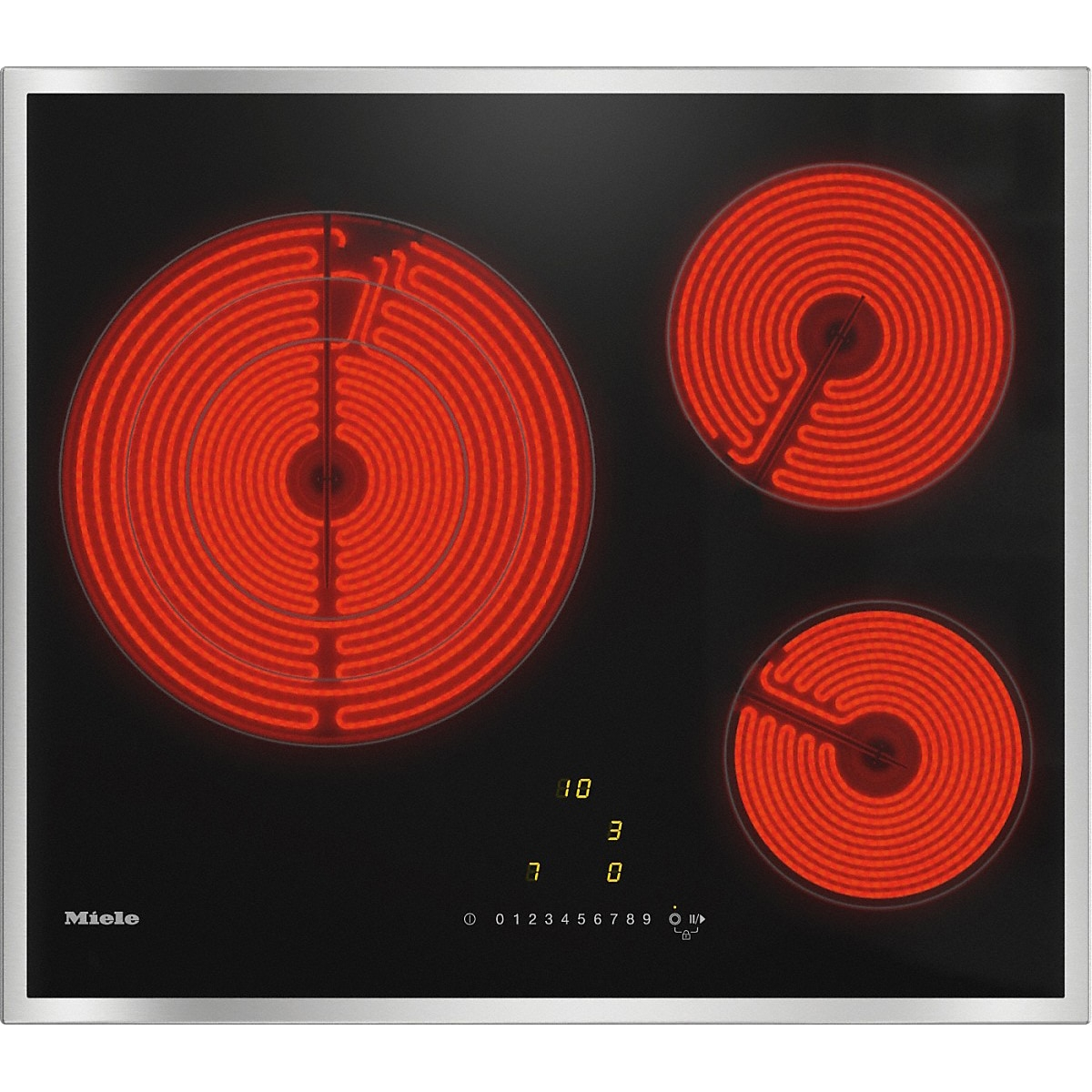 Plita incorporabila Miele KM 6527 FR, Electrica, 3 zone de gatire, Timer, Stop & Go, Rama inox, 60 cm, Negru
