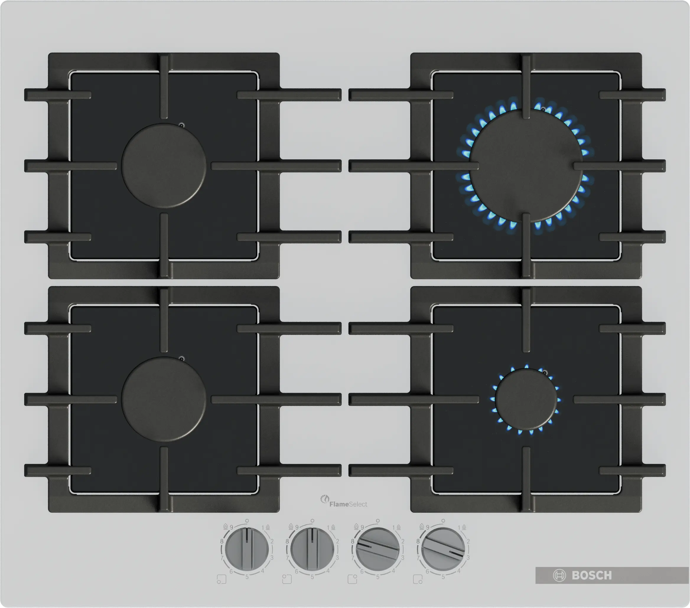 Plita pe gaz Bosch Seria 6 îmbină designul elegant din sticlă quartz albă cu controlul precis al flăcării prin tehnologia FlameSelect. Cu 4 arzătoare, suporturi din fontă și 9 trepte de putere, oferă performanță, siguranță și ușurință în utilizare pentru orice bucătărie modernă.
