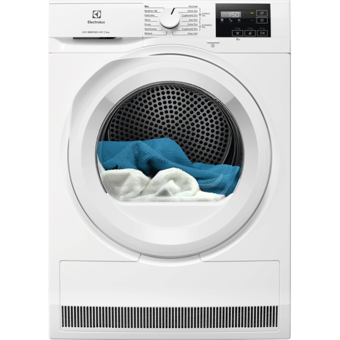 Uscător de rufe cu pompă de căldură Electrolux EW6D28WE, capacitate 8 kg, programe variate, clasa energetică D, Alb