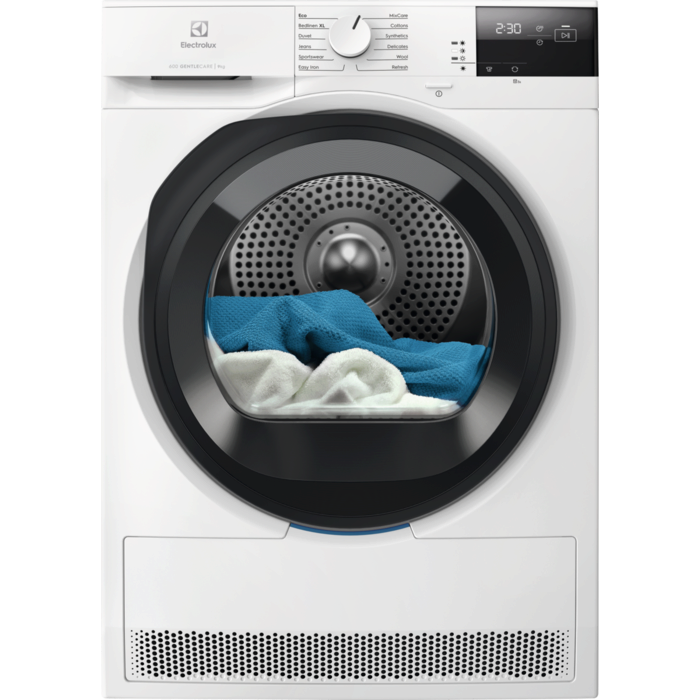 Uscător de rufe cu pompă de căldură Electrolux EW6D295GE – 9 kg, 3DSense & DelicateCare cu EasyClean & AntiCrease, Clasa A+++, Alb