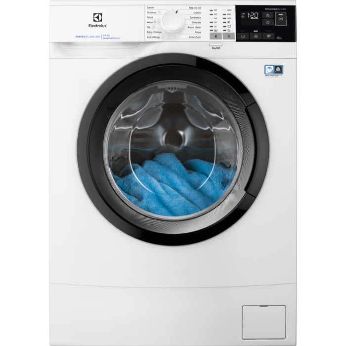 Mașina de spălat rufe slim PerfectCare 600 cu sistem SensiCare adaptează durata programului la dimensiunea încărcăturii folosind mai puţină energie și apă și prevenind spălarea excesivă a hainelor. Permiţând cele mai economice cicluri chiar și pentru cele mai mici încărcături, aceasta are și un profil îngust pentru a economisi spaţiu fără a compromite capacitatea sau performanţa
