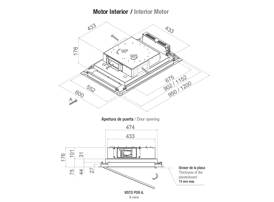 Unitățile cu motoare V.2450 Intermediar Exterior și V.2350 Roof, încorporează standard 5 m de conductă de evacuare a fumului SEC System® cu Ø203 mm interior și Ø253 mm exterior.