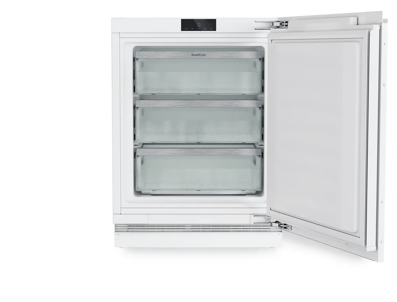 Toate congelatoarele cu NoFrost și SmartFrost dispun de sertare care pot fi îndepărtate comod. Așa a fost creat VarioSpace, sistemul practic pentru spațiu suplimentar de depozitare, astfel încât se poate crea rapid spațiu chiar și pentru alimente congelate mai mari