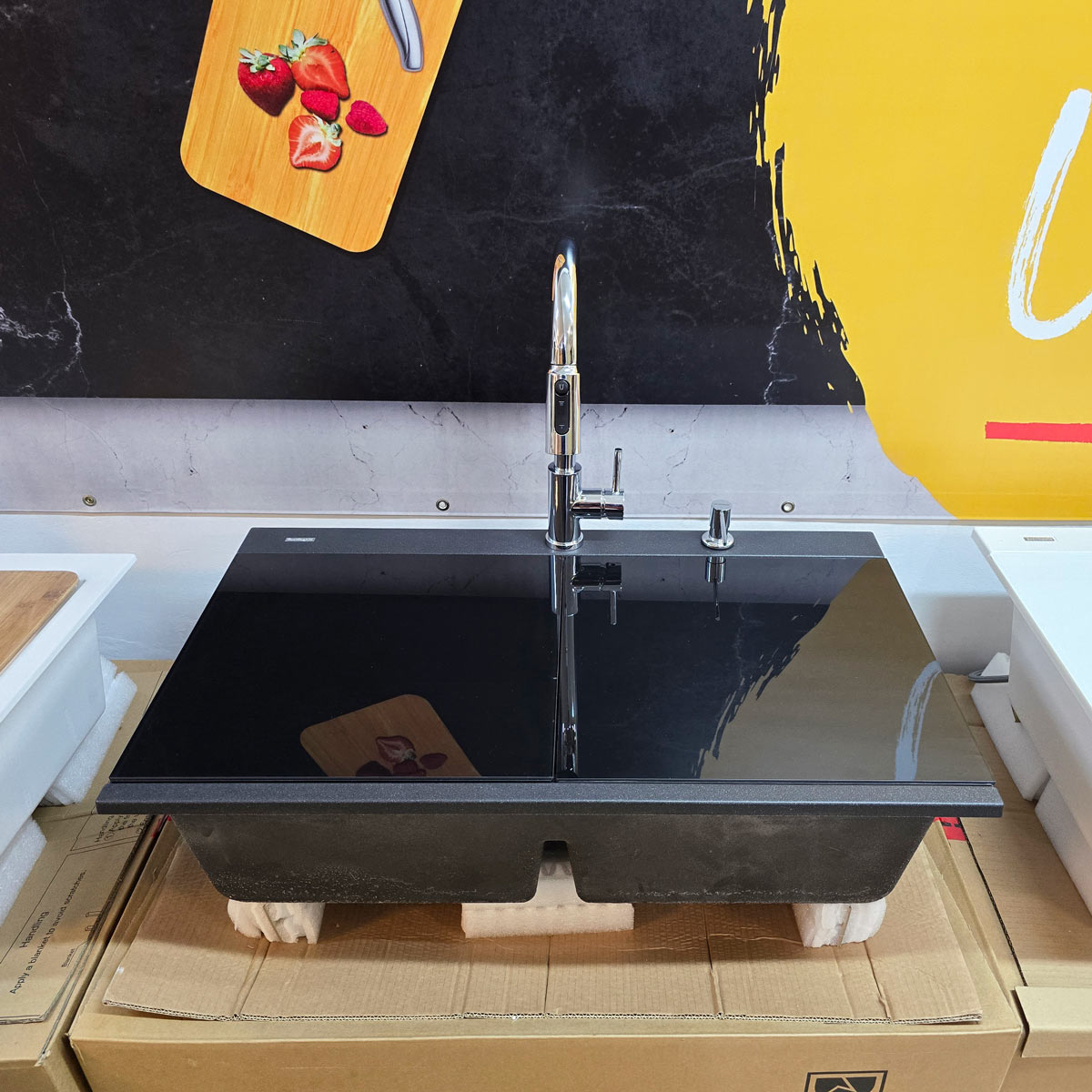Accesoriile pentru instalare, cum sunt furtunurile de alimentare, T-ul specific pentru conectarea la furtunul extesibil de sub chiuveta atat a stutului care iese din cartusul ceramic si care furnizeaza apa calda/rece/mixata cat si a furtunului care furnizeaza apa filtrata. Totodata sistemul de prindere pe chiuveta sau pe blat sunt incluse.