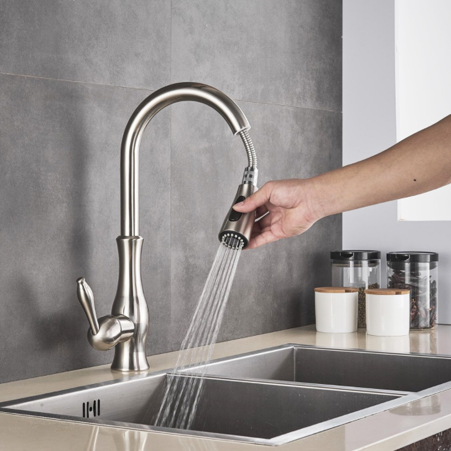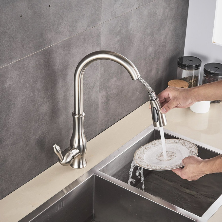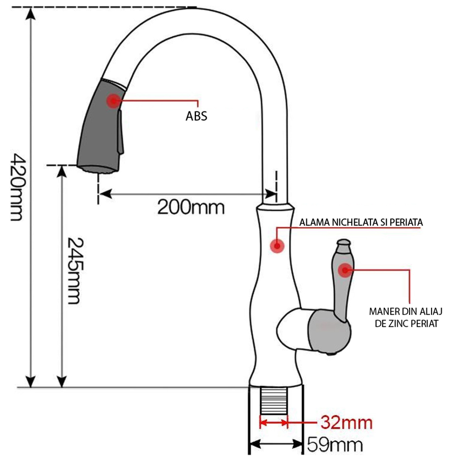 Bateria de chiuveta CookingAid Island Tap este o baterie profesionala de o calitate exceptionala cu cap retractabil / extractibil si buton de schimbare de pe dus pe jet adunat.