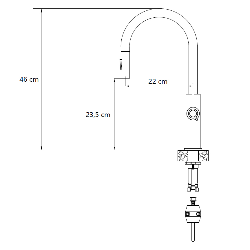 Gaura necesara pentru montaj pe chiuveta sau pe blat: 35mm