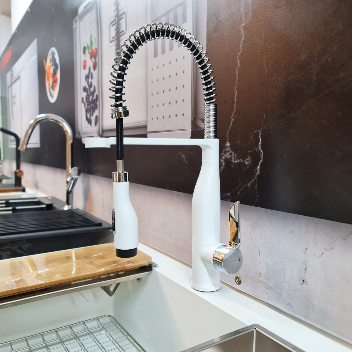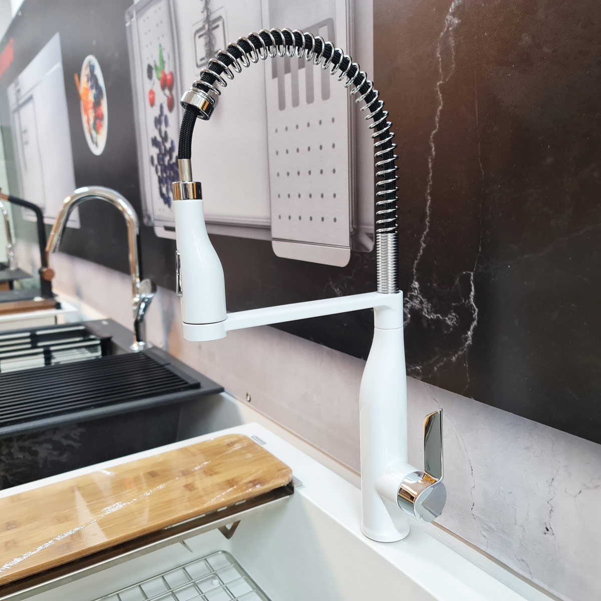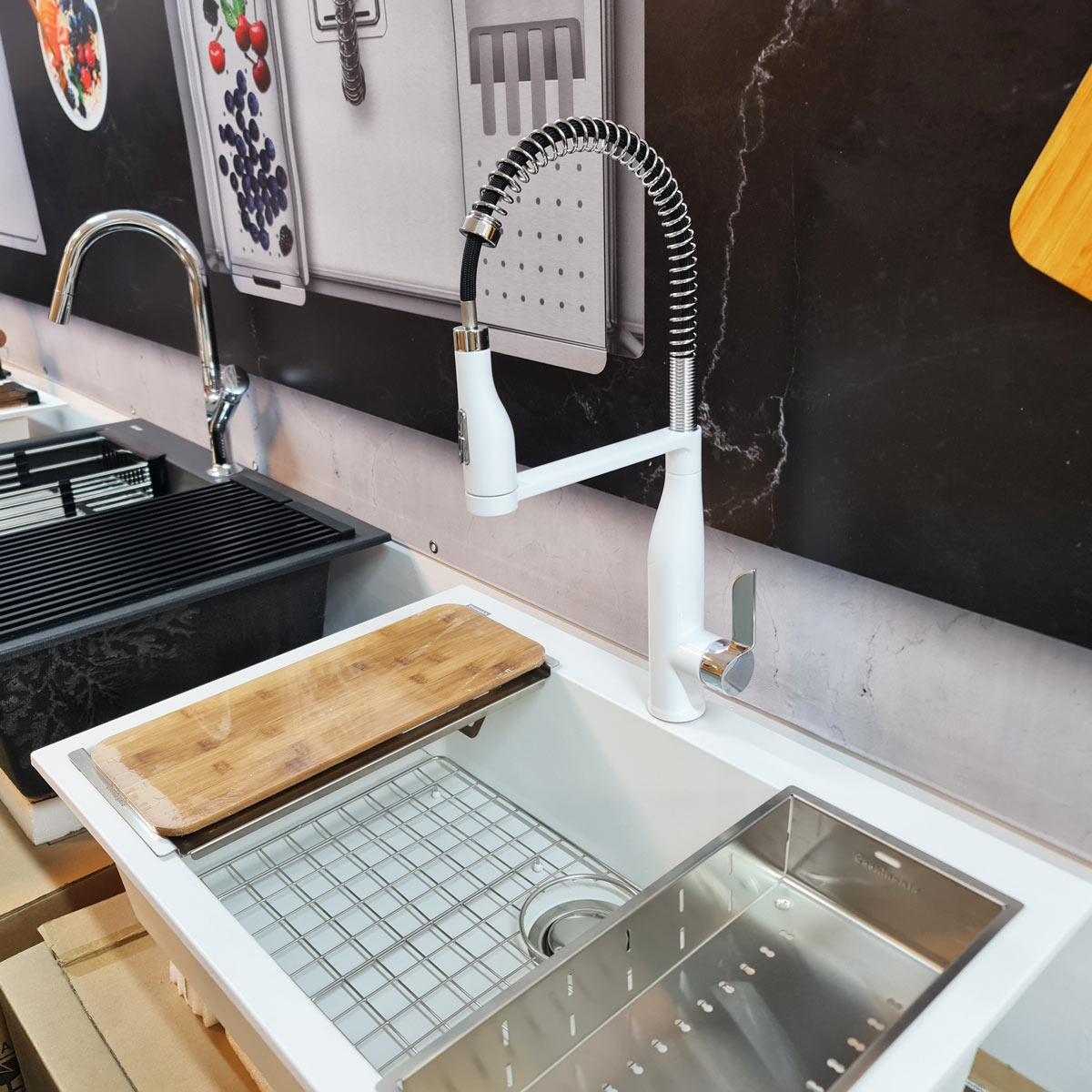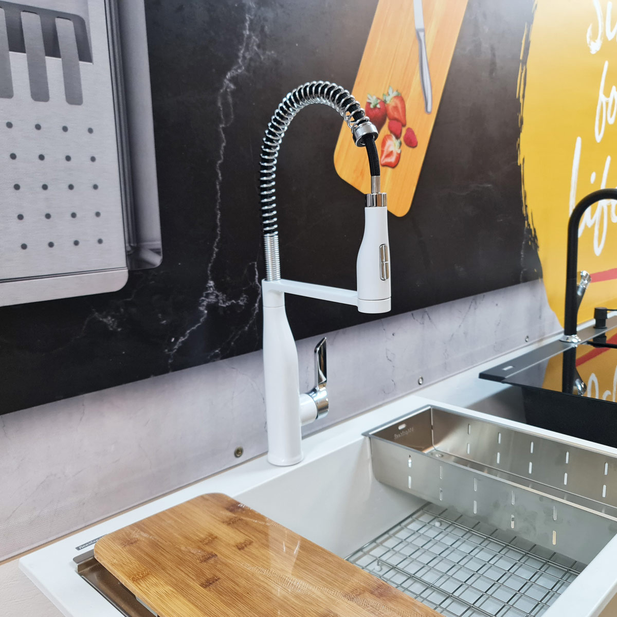 Bateria de chiuveta CookingAid Neo Spring White Chrome este o baterie de bucatarie profesionala cu un design realizat de designerul italian Pininfarina, printre ai carui clienti se numara si Ferrari, Alfa Romeo, Peugeot, Fiat, GM, Lancia, Maserati si altii.