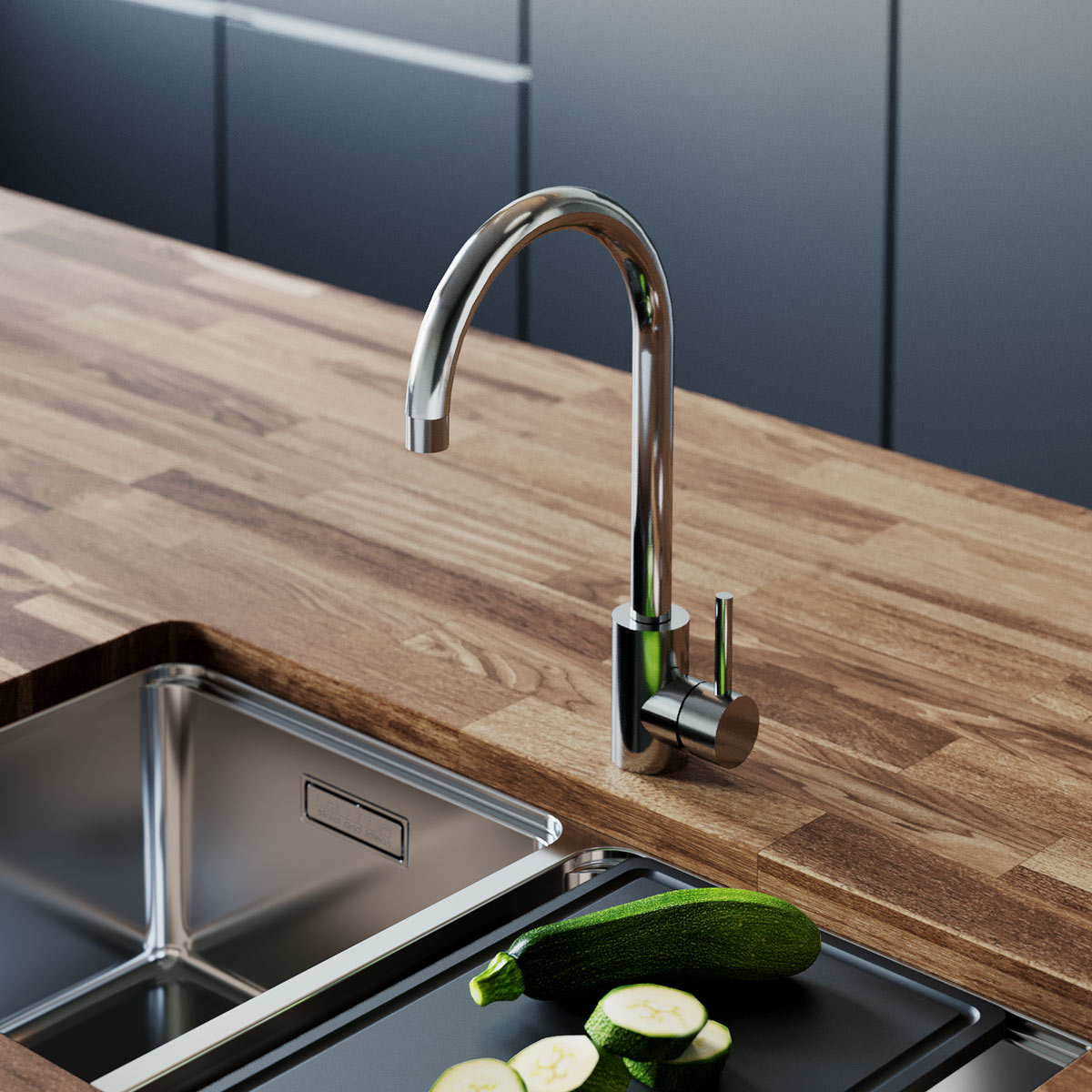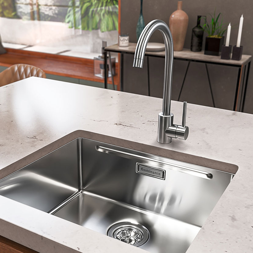Bateria de chiuveta CookingAid Saturn Stainless Steel SUS316 este o baterie de o calitate exceptionala realizata din inox SUS316 periat, cel mai bogat in nichel si crom inox de pe piata, inox care se foloseste si pentru instrumente chirurgicale.