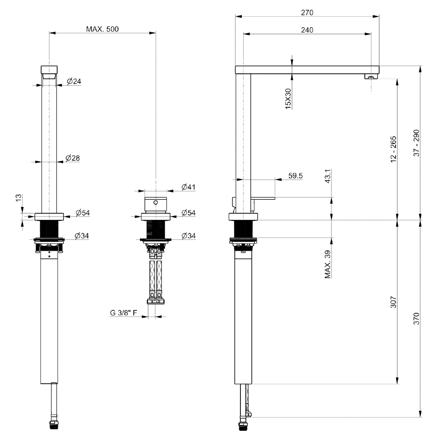 Bateria se poate monta pe o chiuveta sau pe un blat cu o grosime de maxim 39mm iar manerul bateriei se poate monta tot pe o grosime de maxim 39mm.