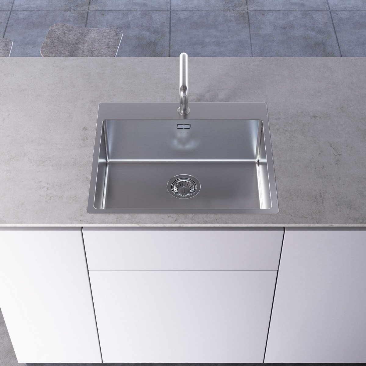 Este o chiuveta cu o singura cuva si ventil de scurgere rotund, cu inchidere si deschidere prin apasare/ridicare, ideala pentru bucatarii medii sau mici, unde se doreste eficientizarea spatiului pe blat.