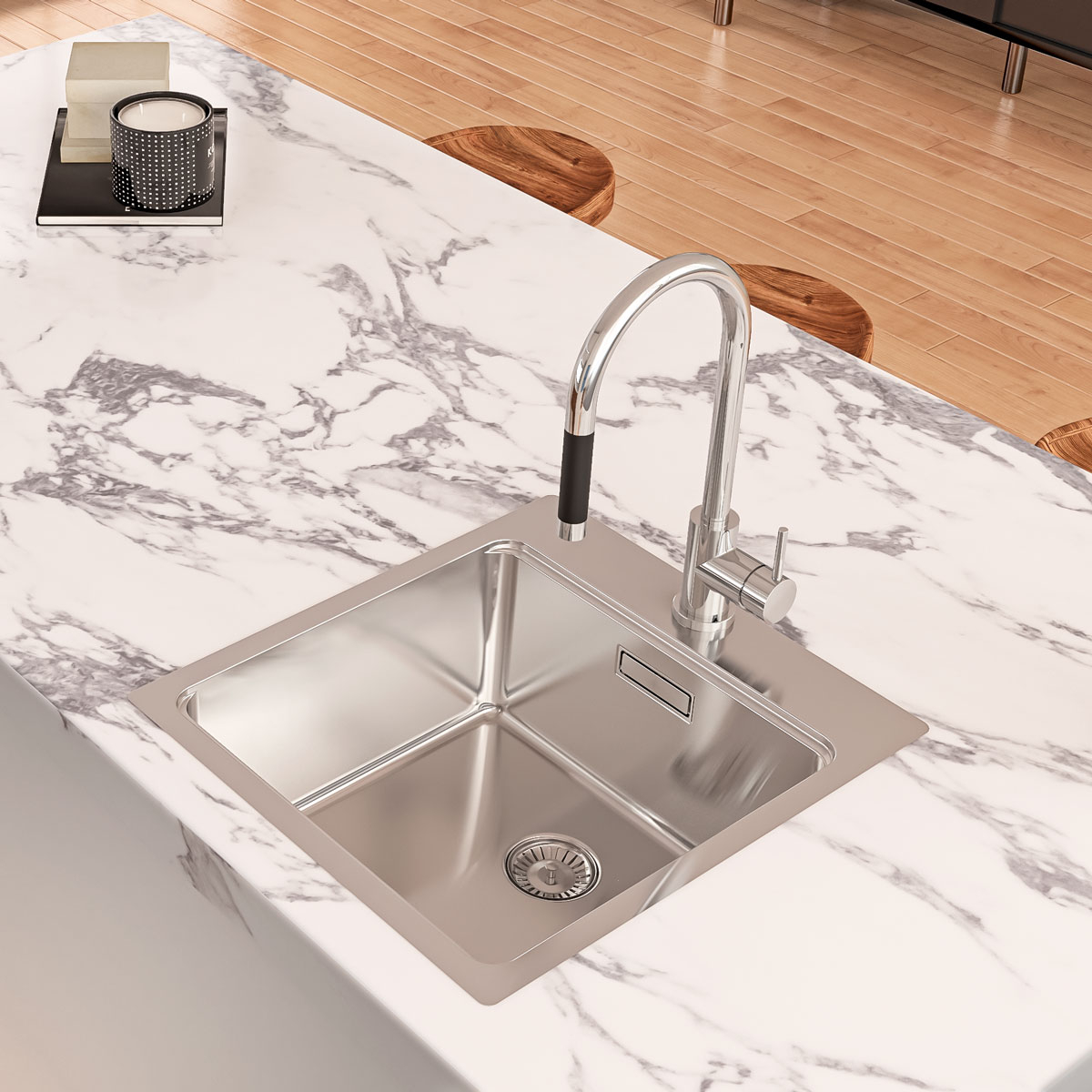 -chiuveta CookingAid Una 46 cu finisaj inox satinat, cu o grosime a inoxului de 1.2 mm;