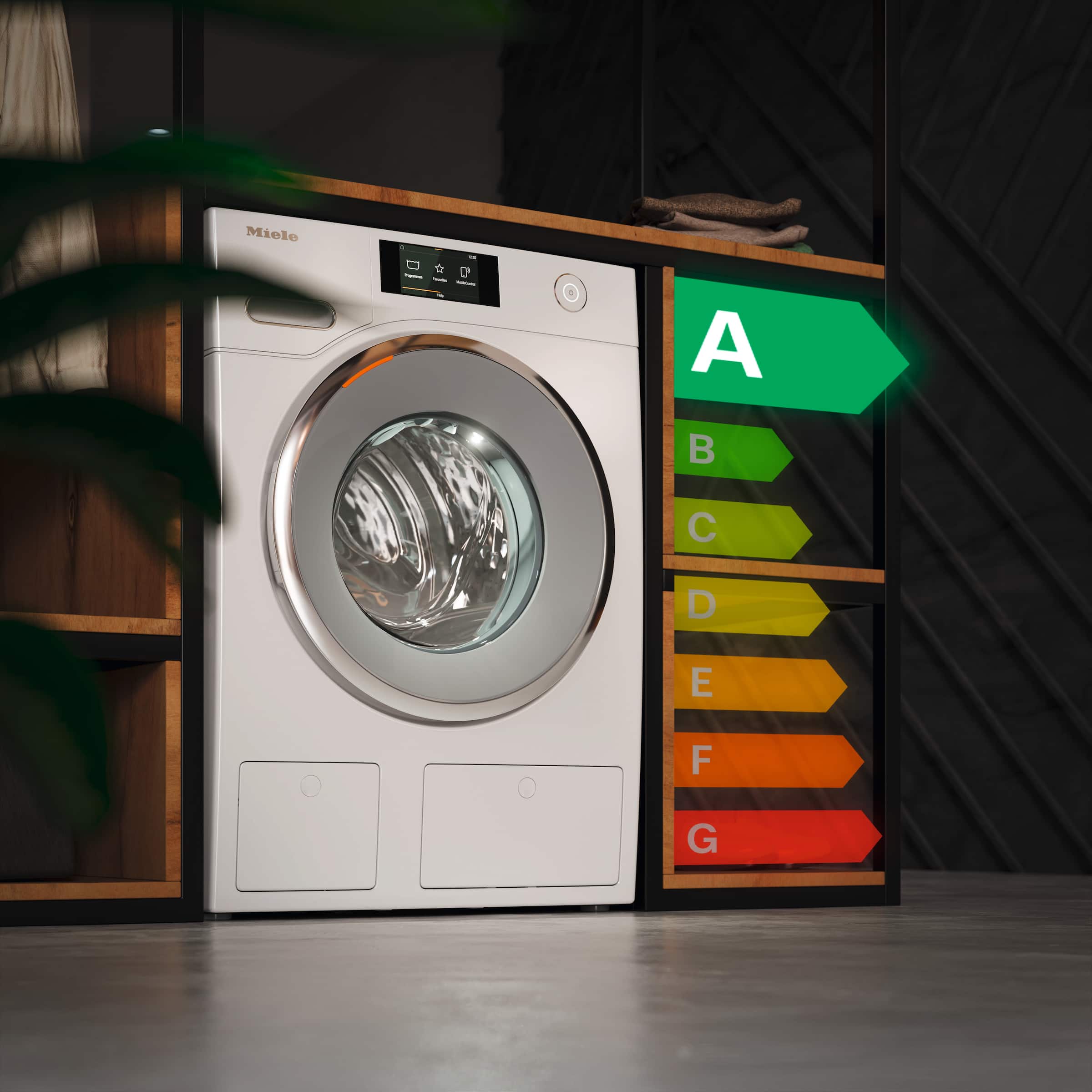 Mașinile de spălat Miele au fost proiectate special pentru a reduce consumul de apă și energie. Aceasta înseamnă că unele modele economisesc cu până la 10-20% mai mult față de valoarea de prag (52) pentru cea mai înaltă clasă de eficiență energetică, adică clasa A. Astfel, vă bucurați de rezultate de spălare remarcabile, care sunt, totodată, economice și prietenoase cu mediul.